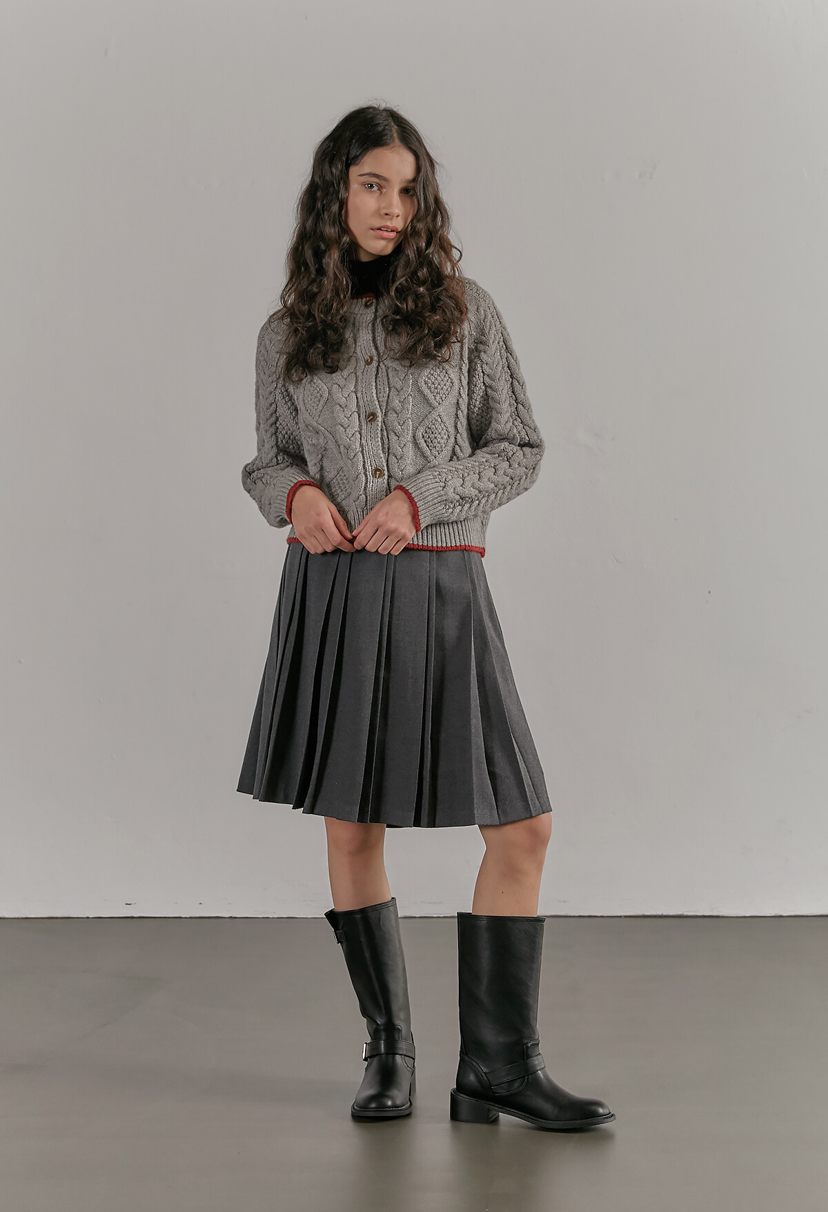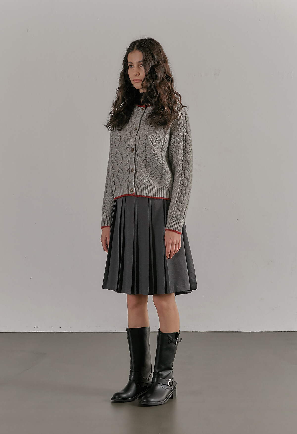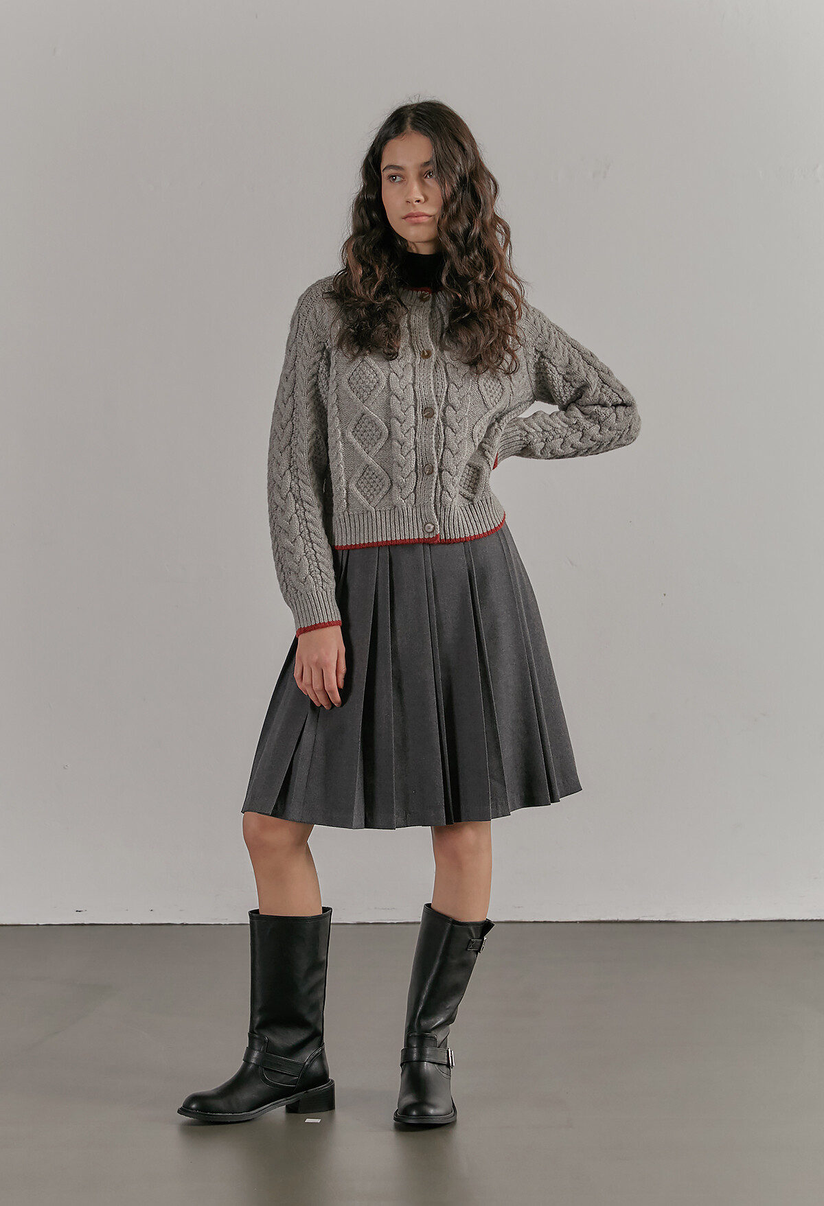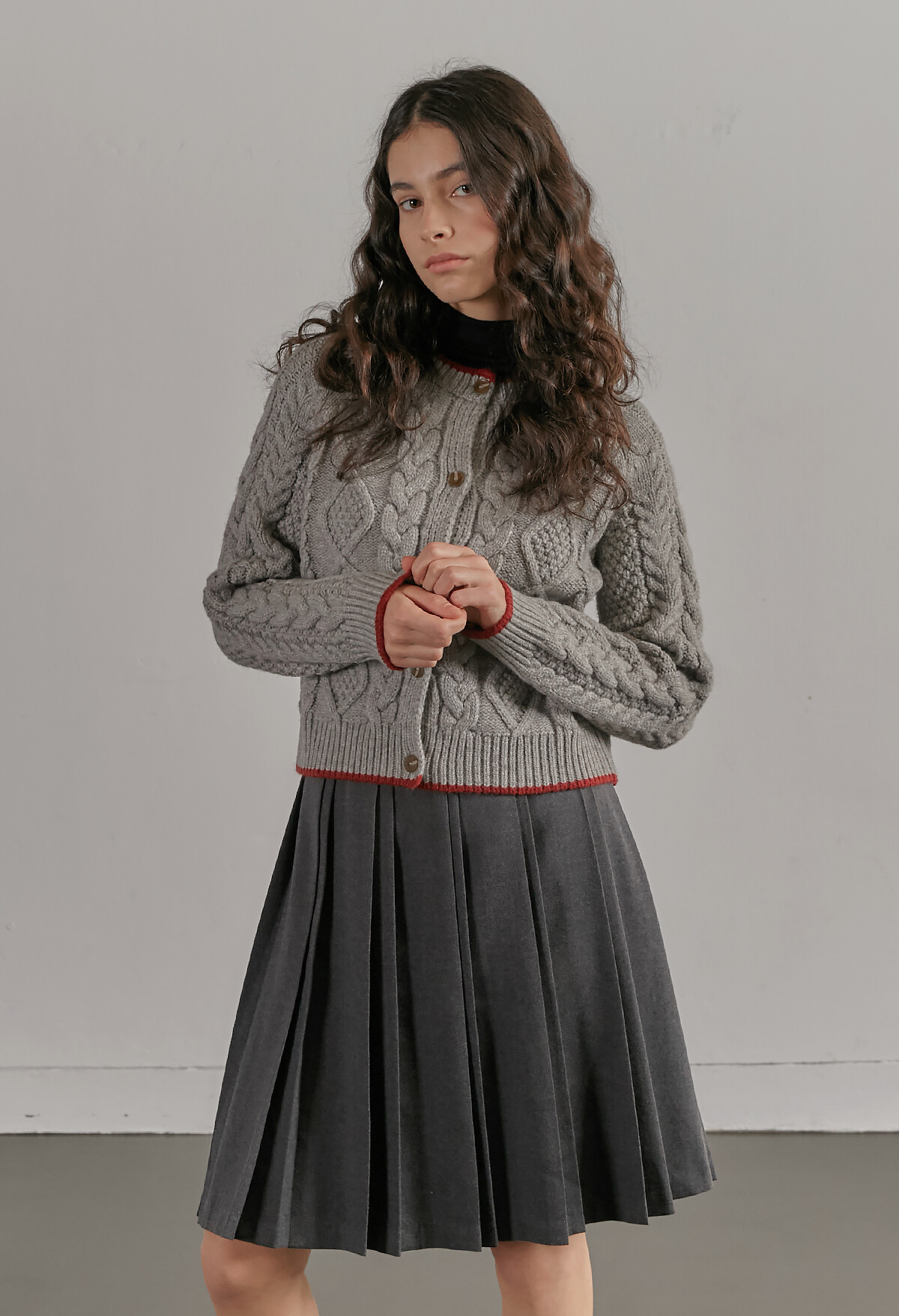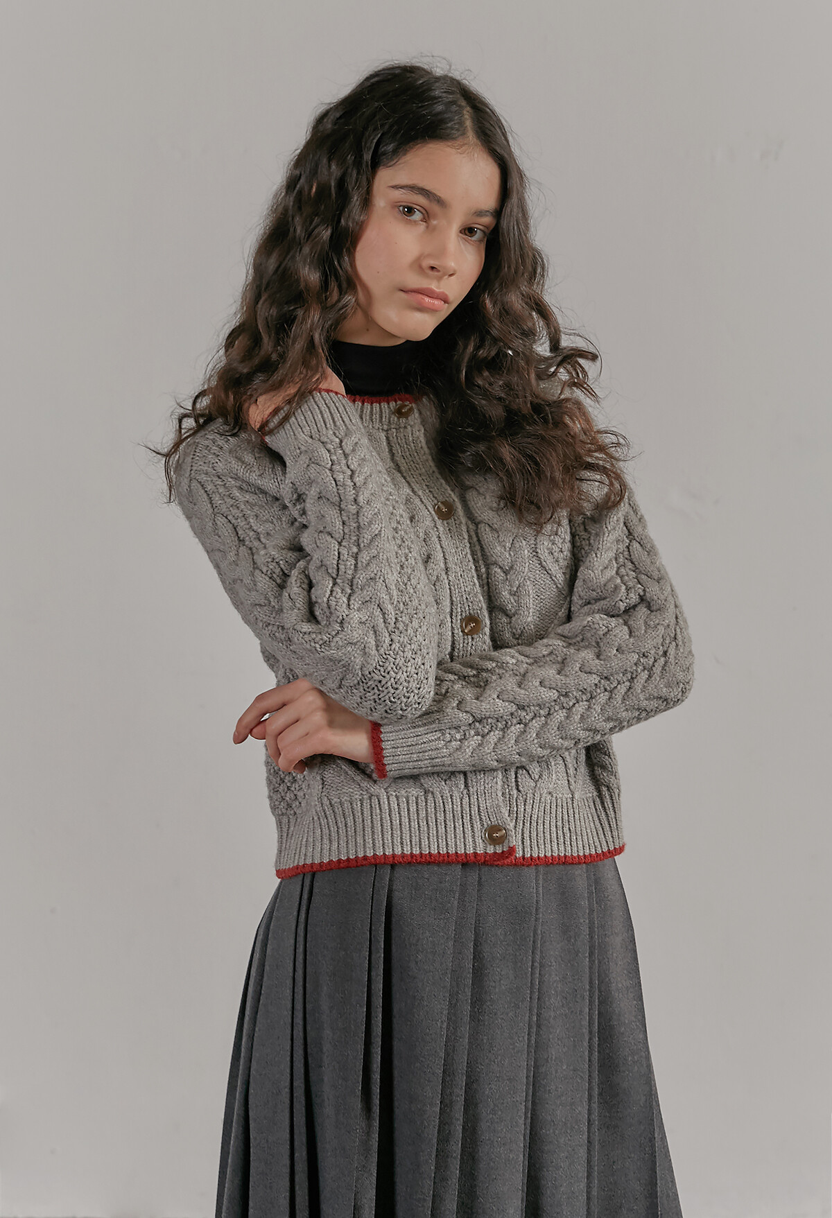 [C506] Contrast twist knit cardigan - Gray