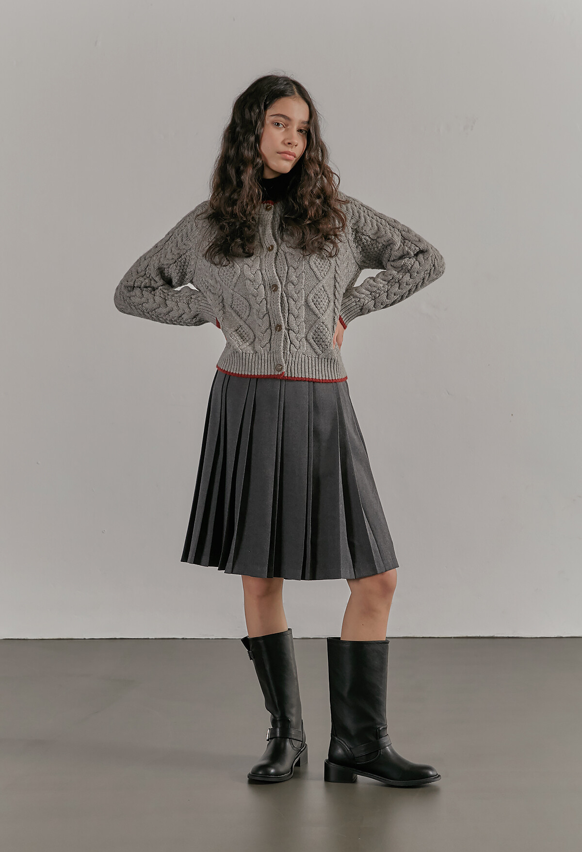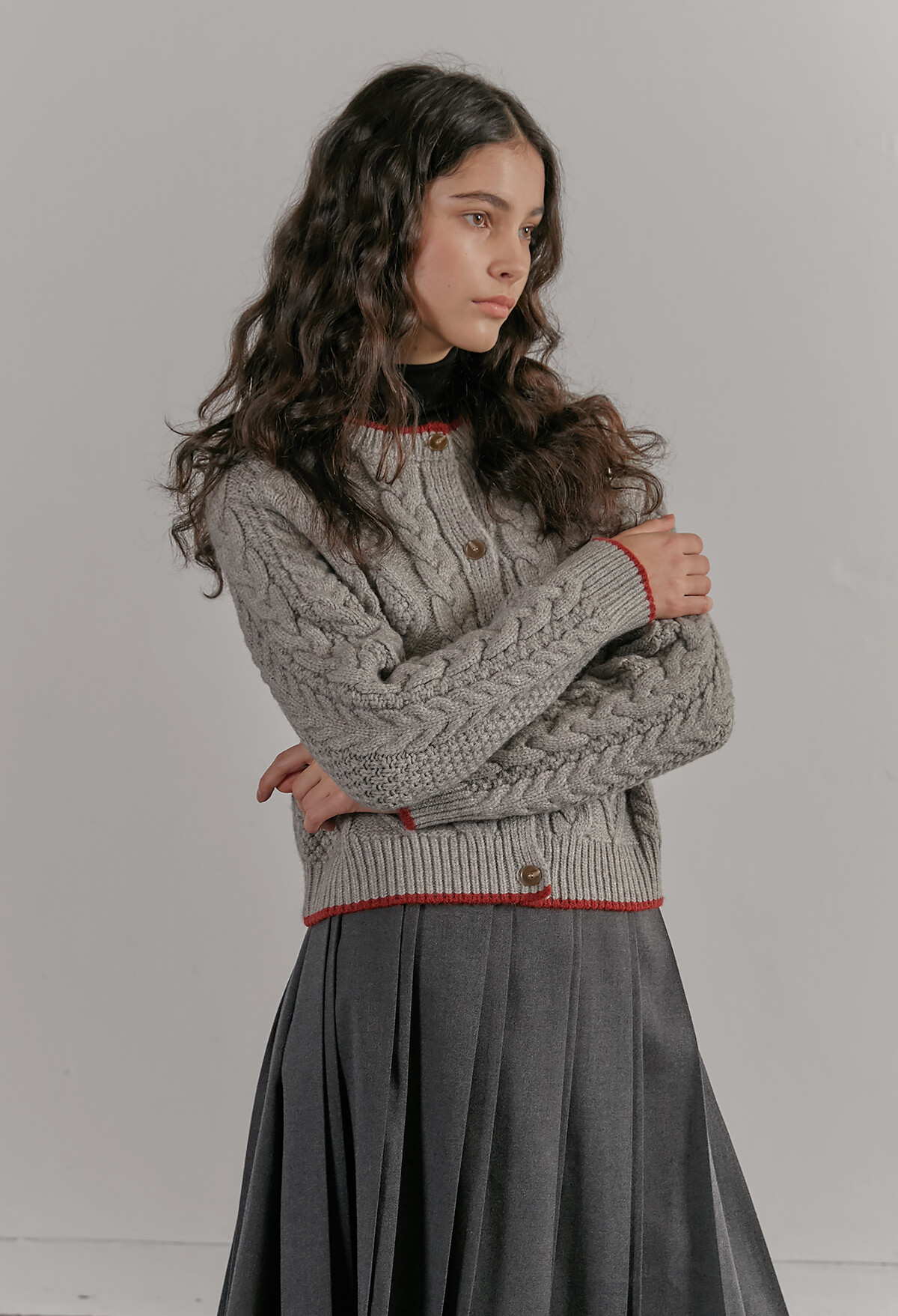 - 볼륨감 있는 케이블 니트 꽈배기 짜임