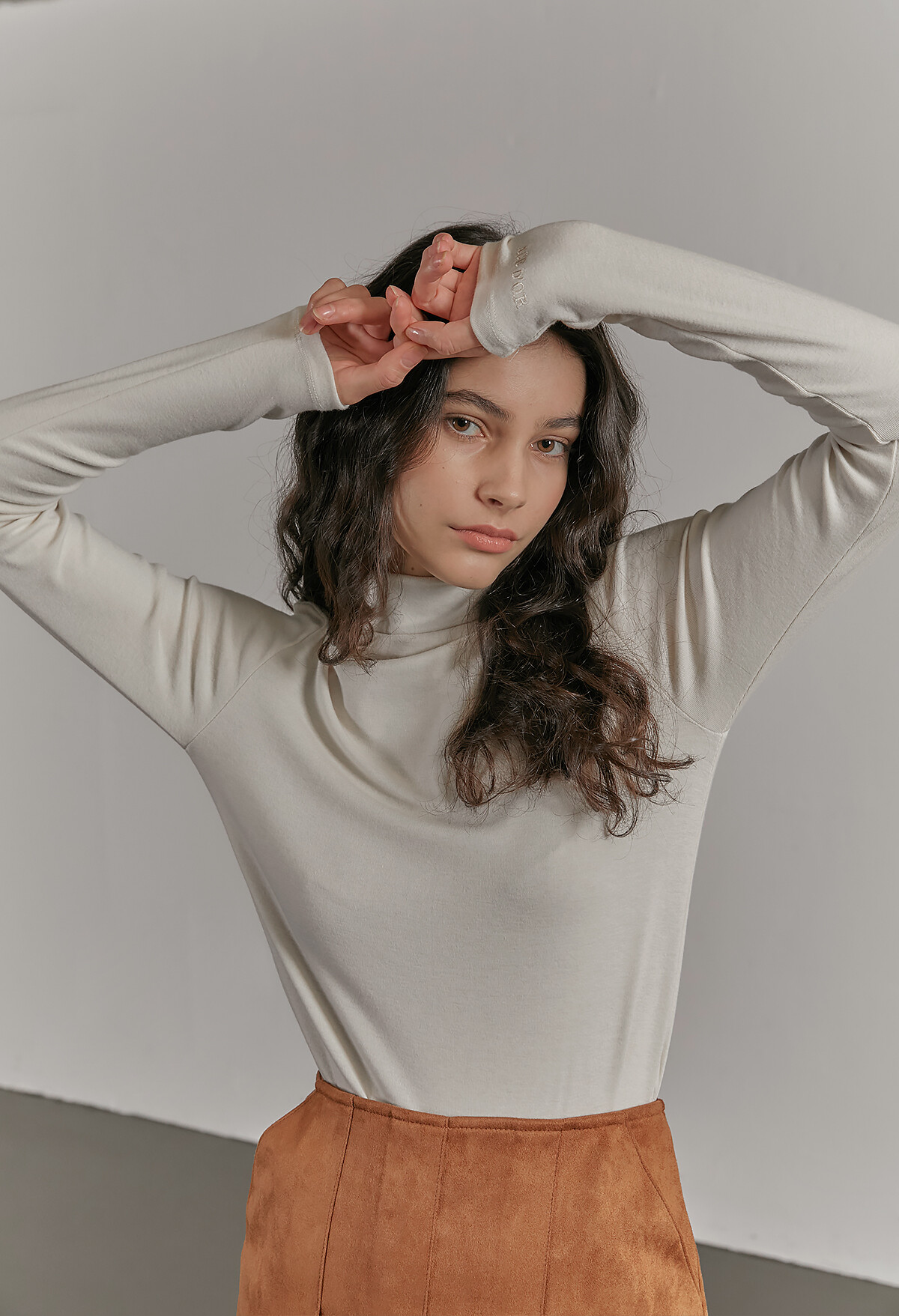 [L015] Logo Neck Long Sleeve T-shirt - Cream