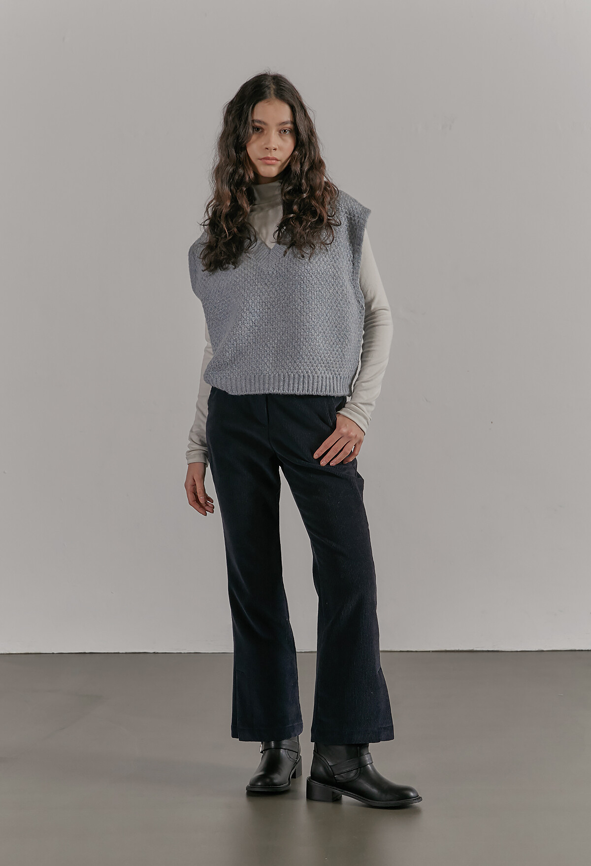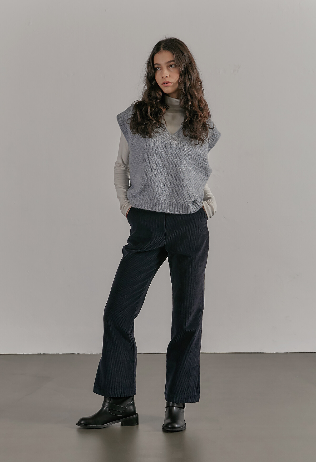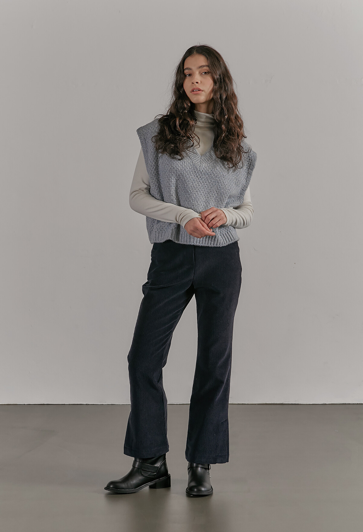 [P088] Split Corduroy Bootcut Trousers - Navy