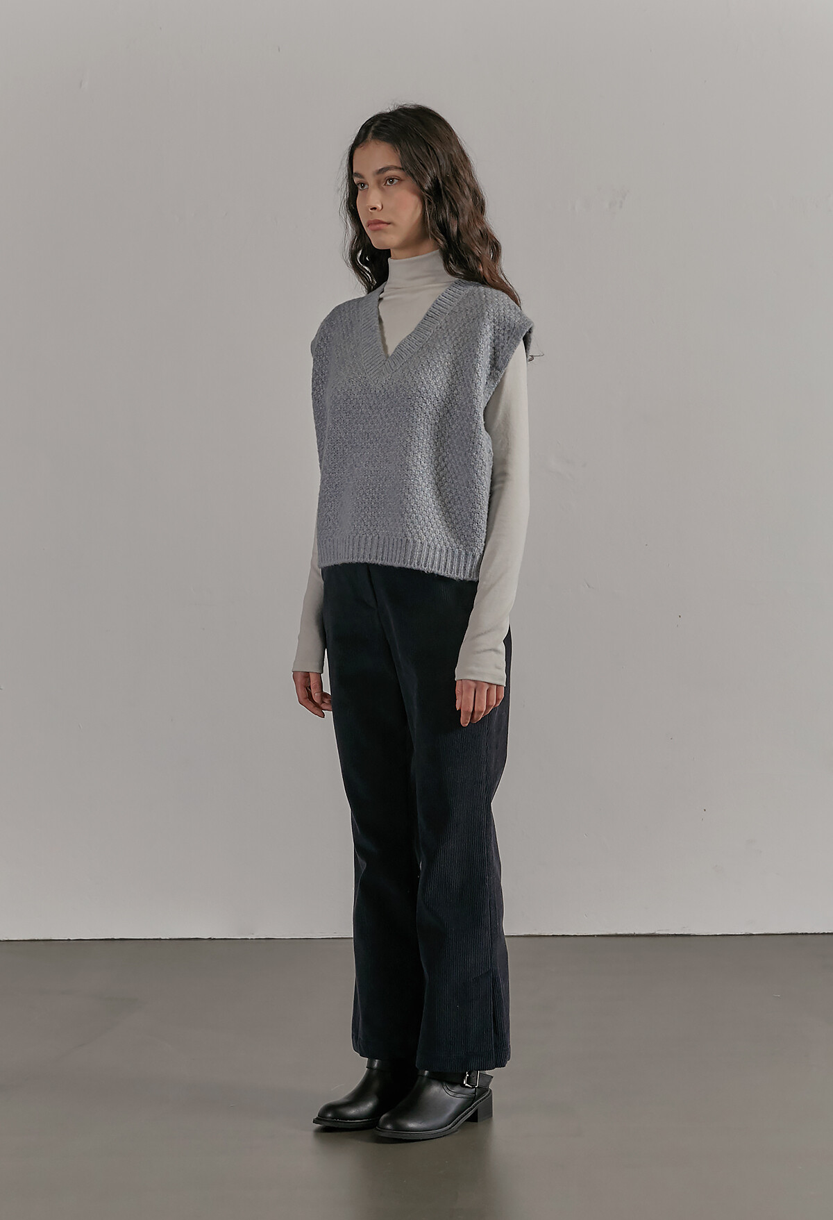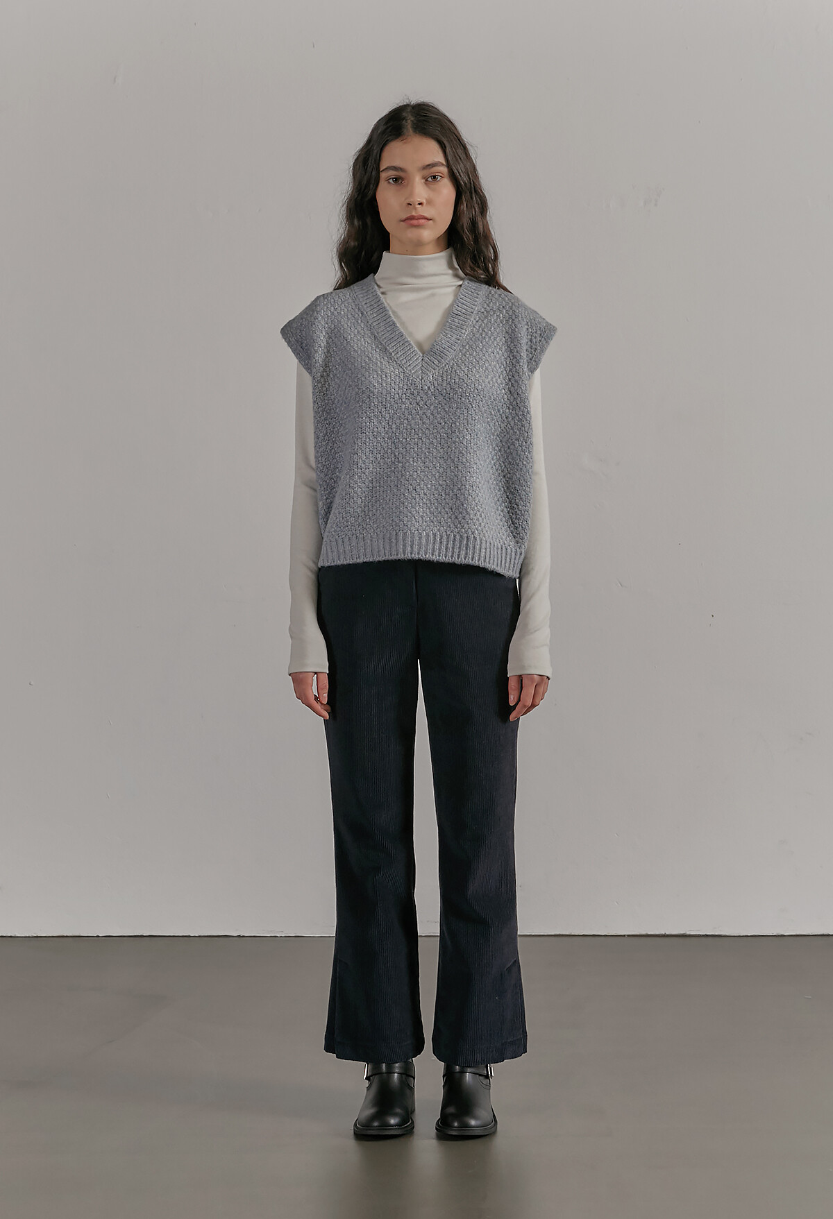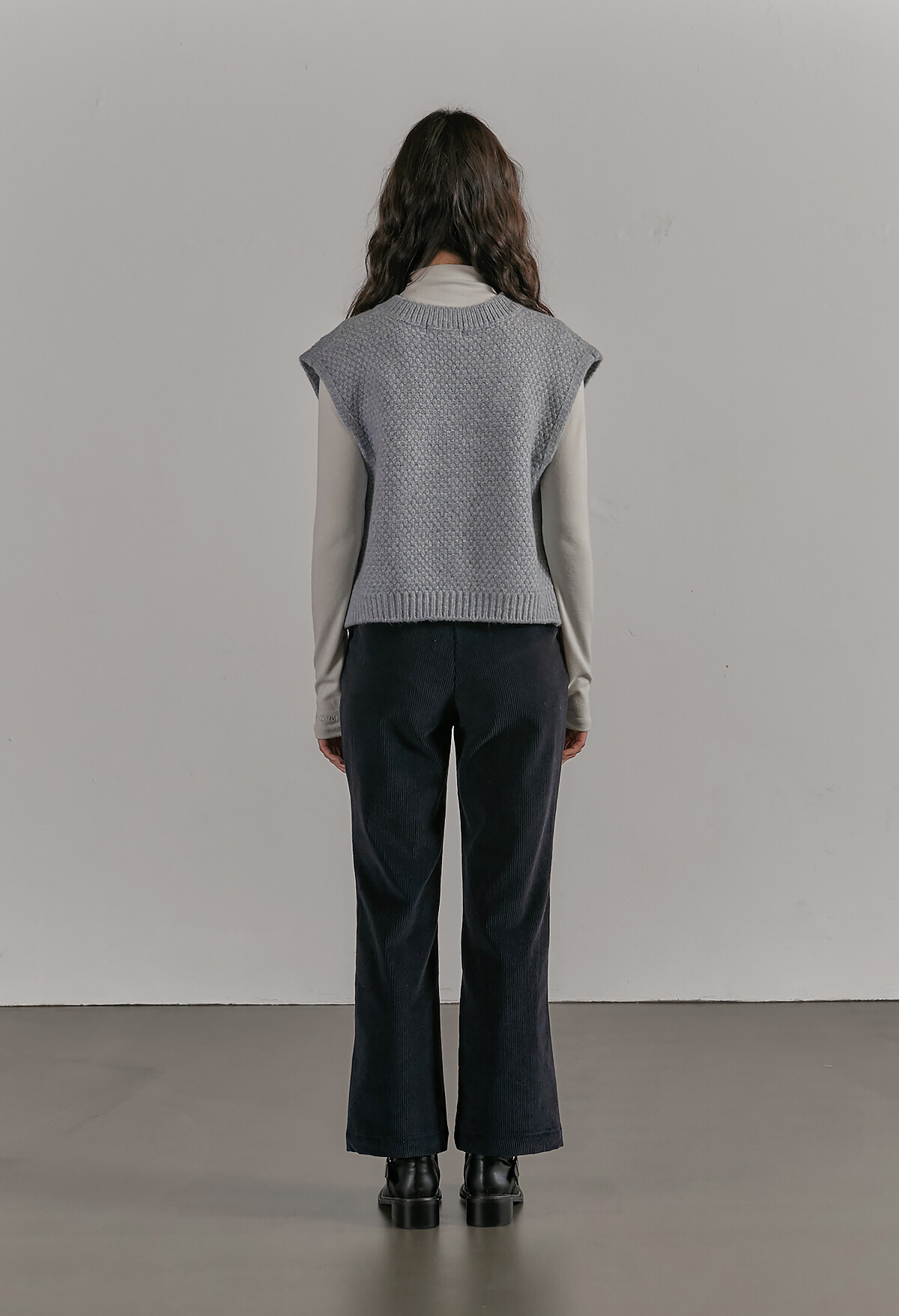 [P088] Split Corduroy Bootcut Trousers - Navy