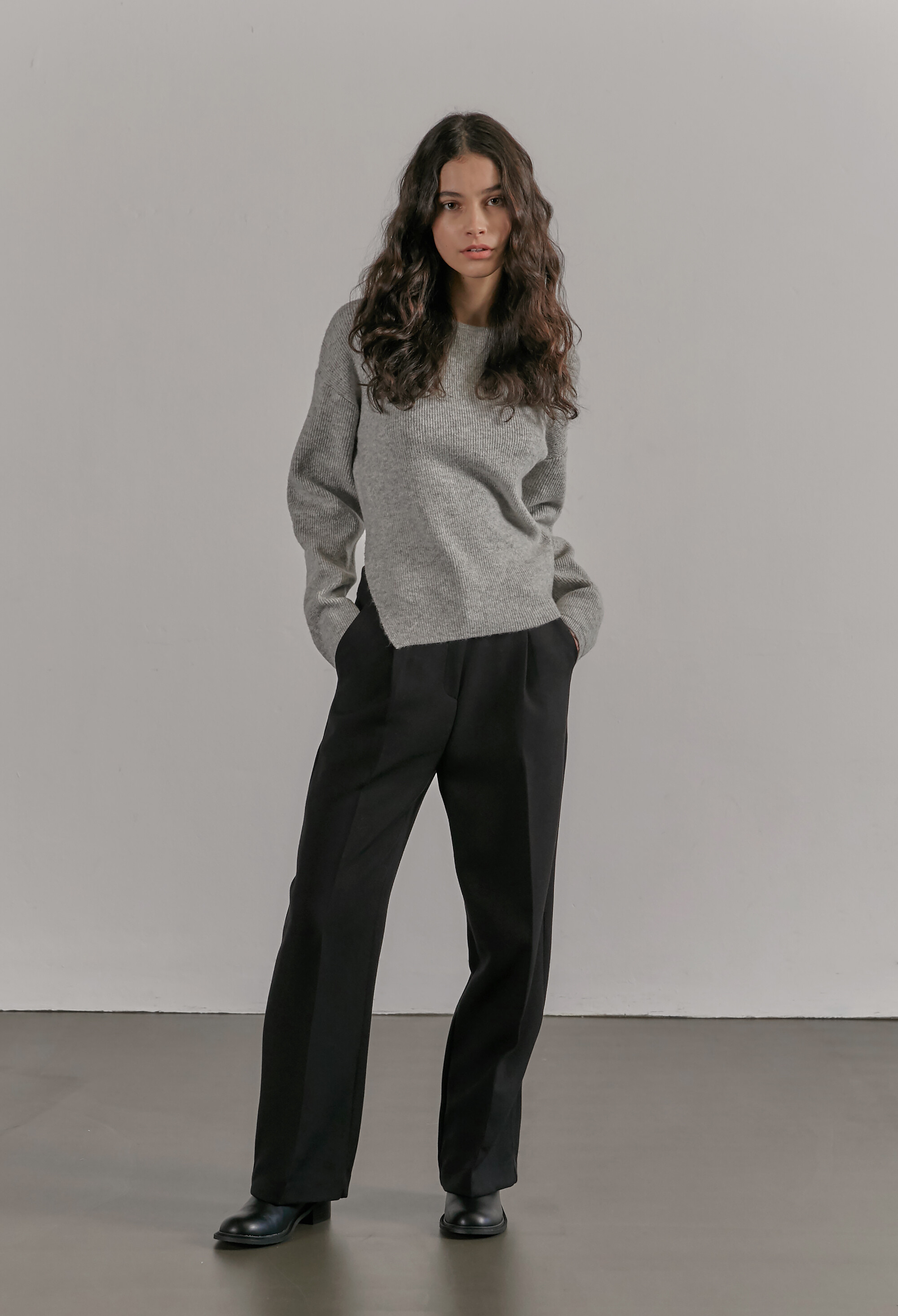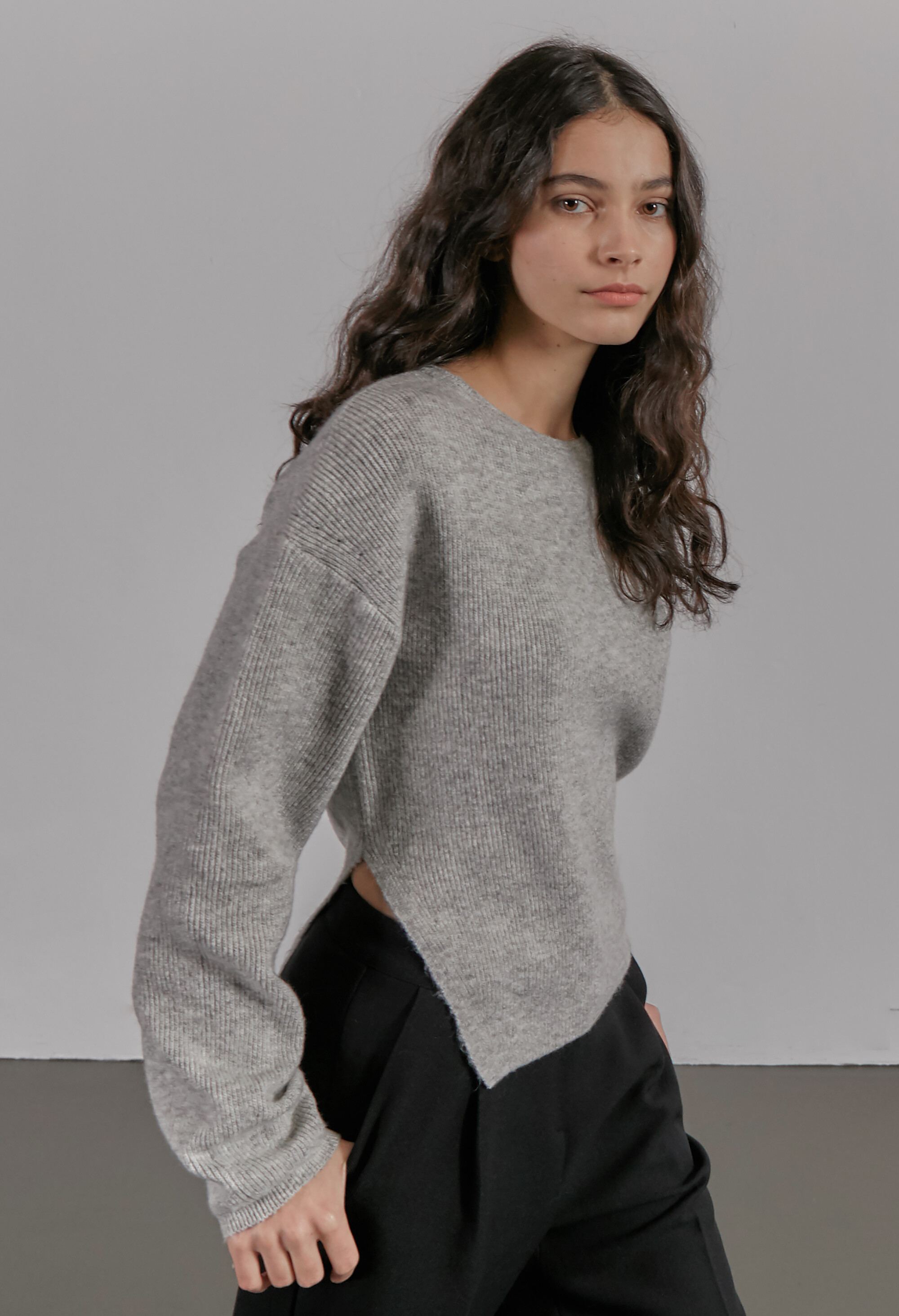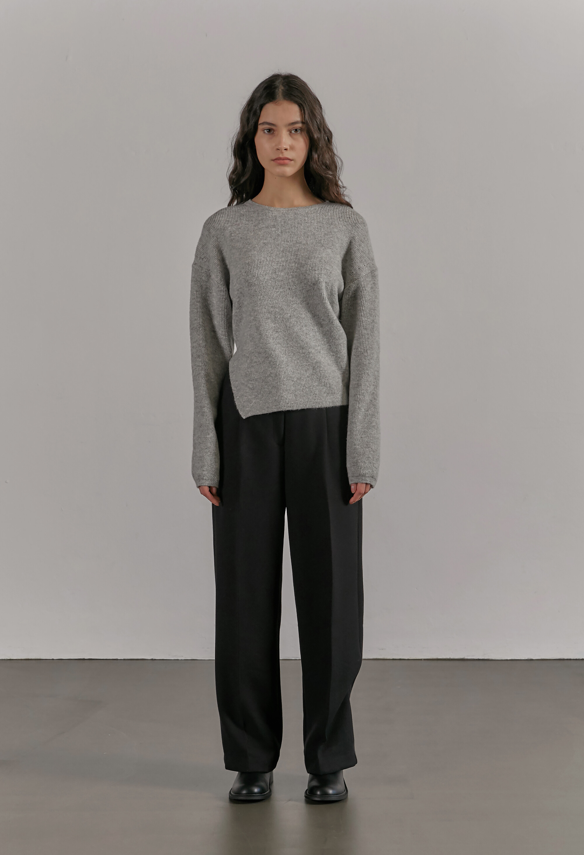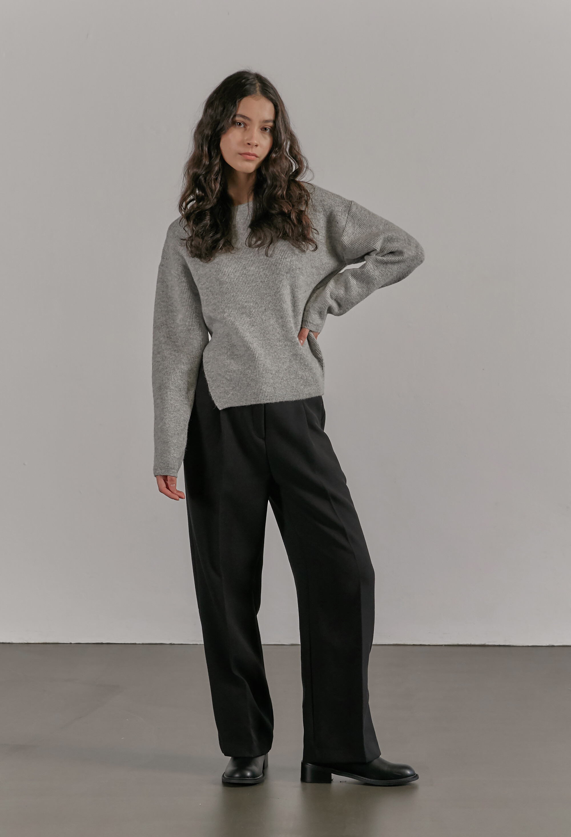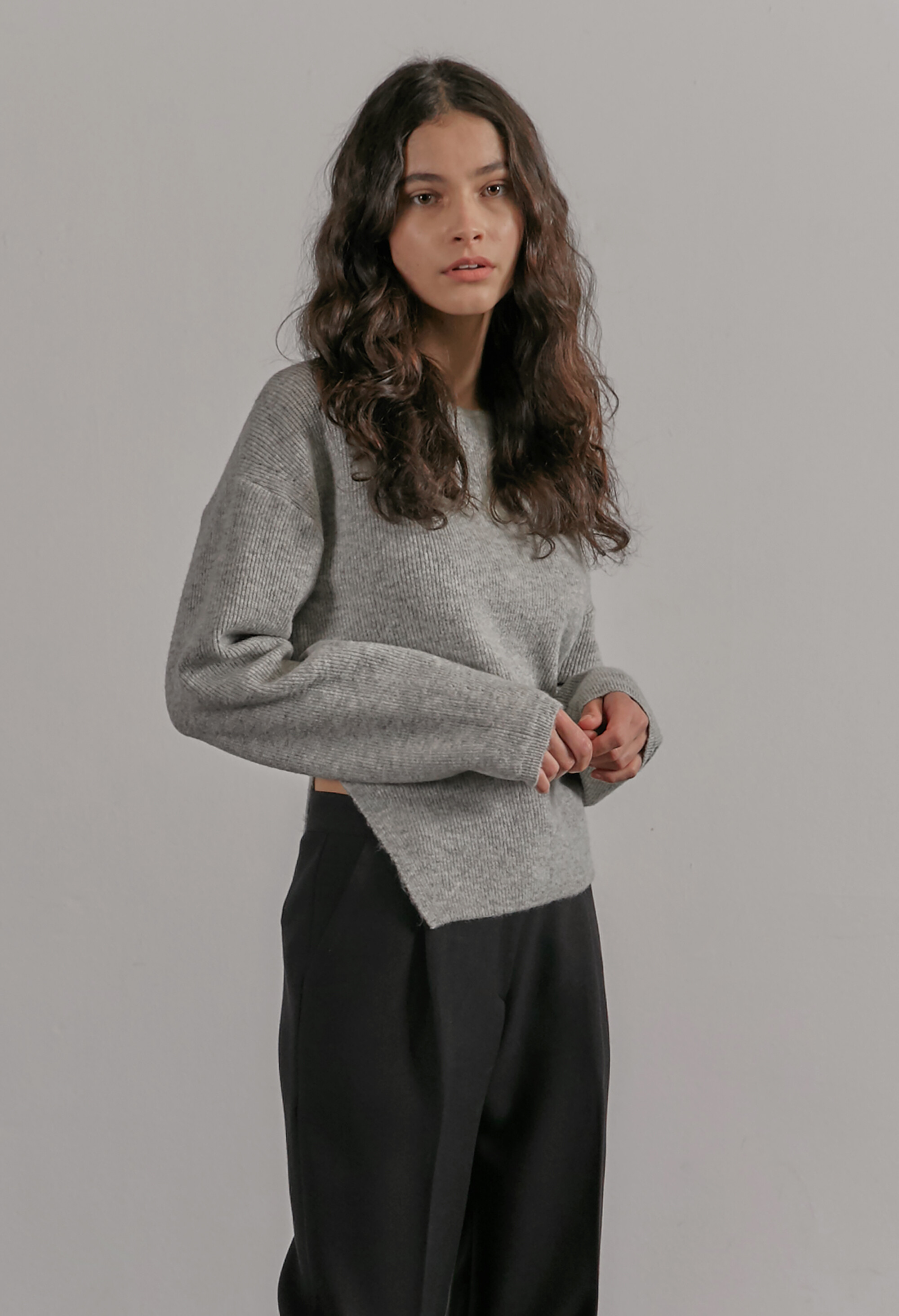 - 우측 옆라인 사선트임 포인트 라운드 니트