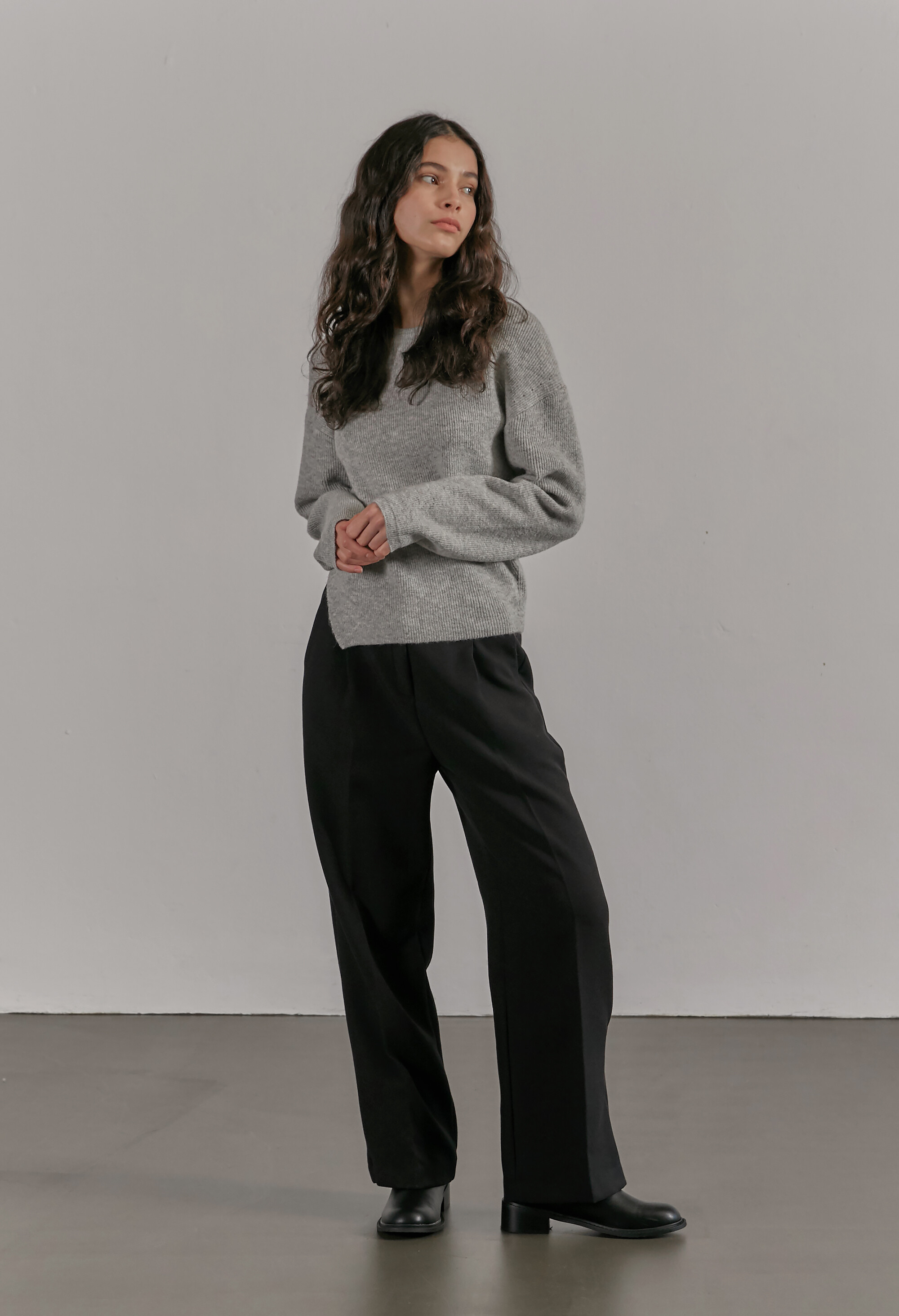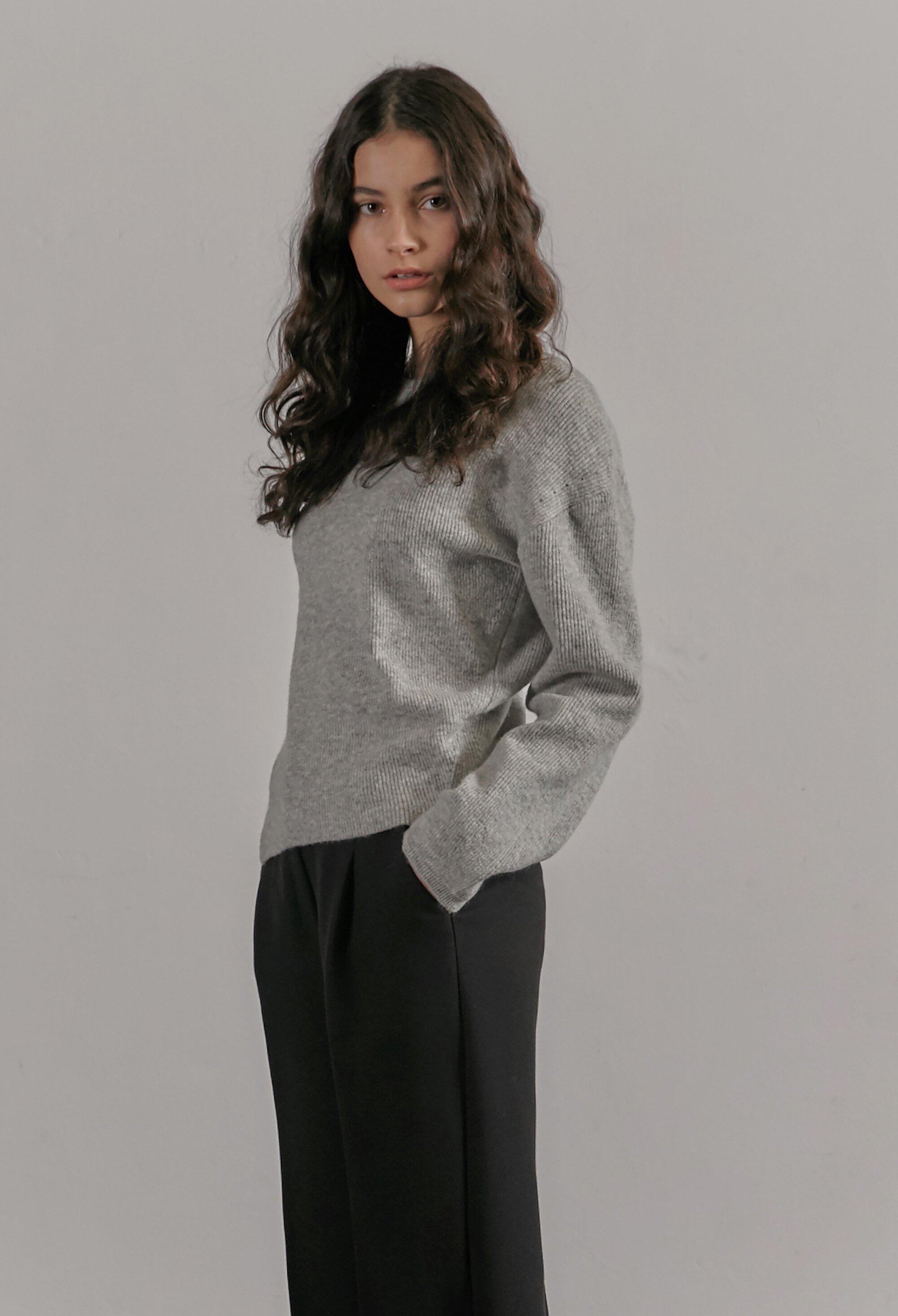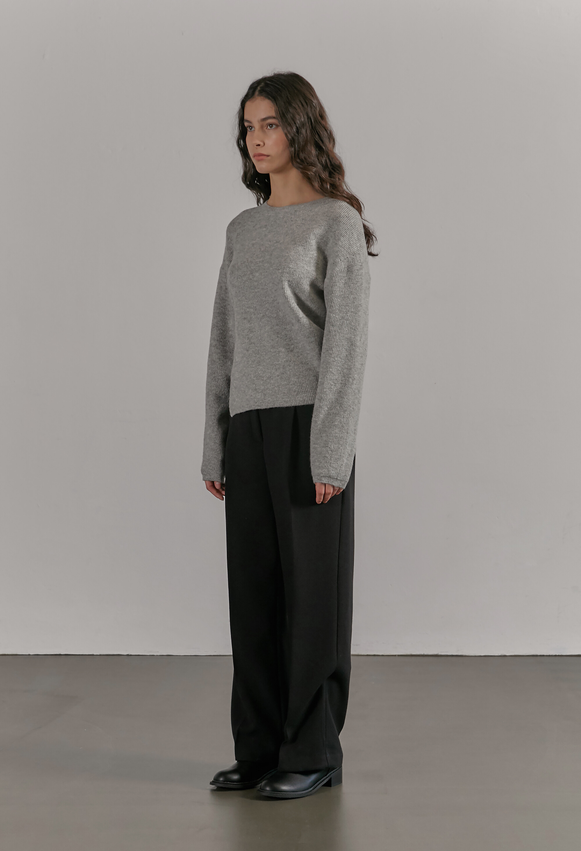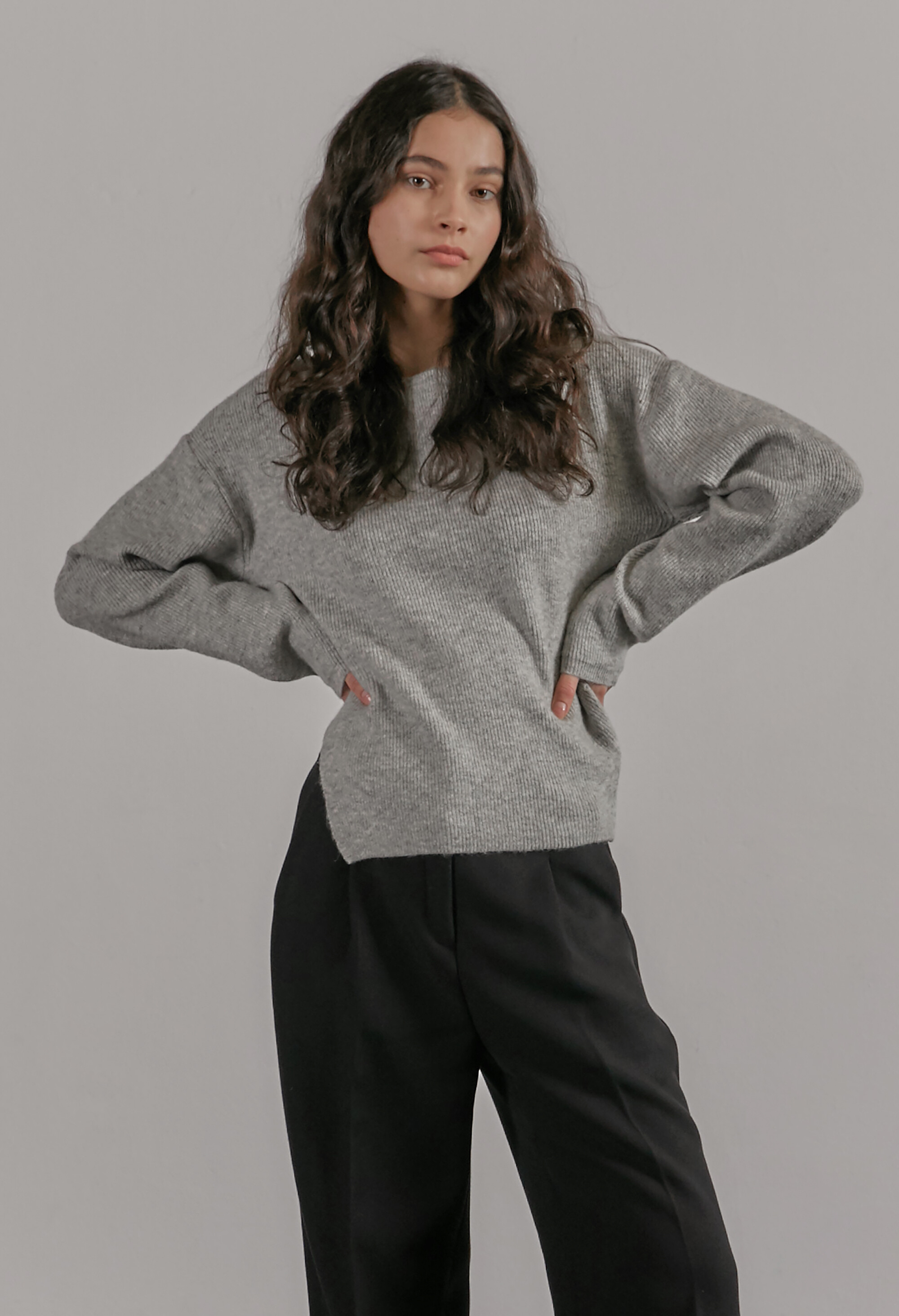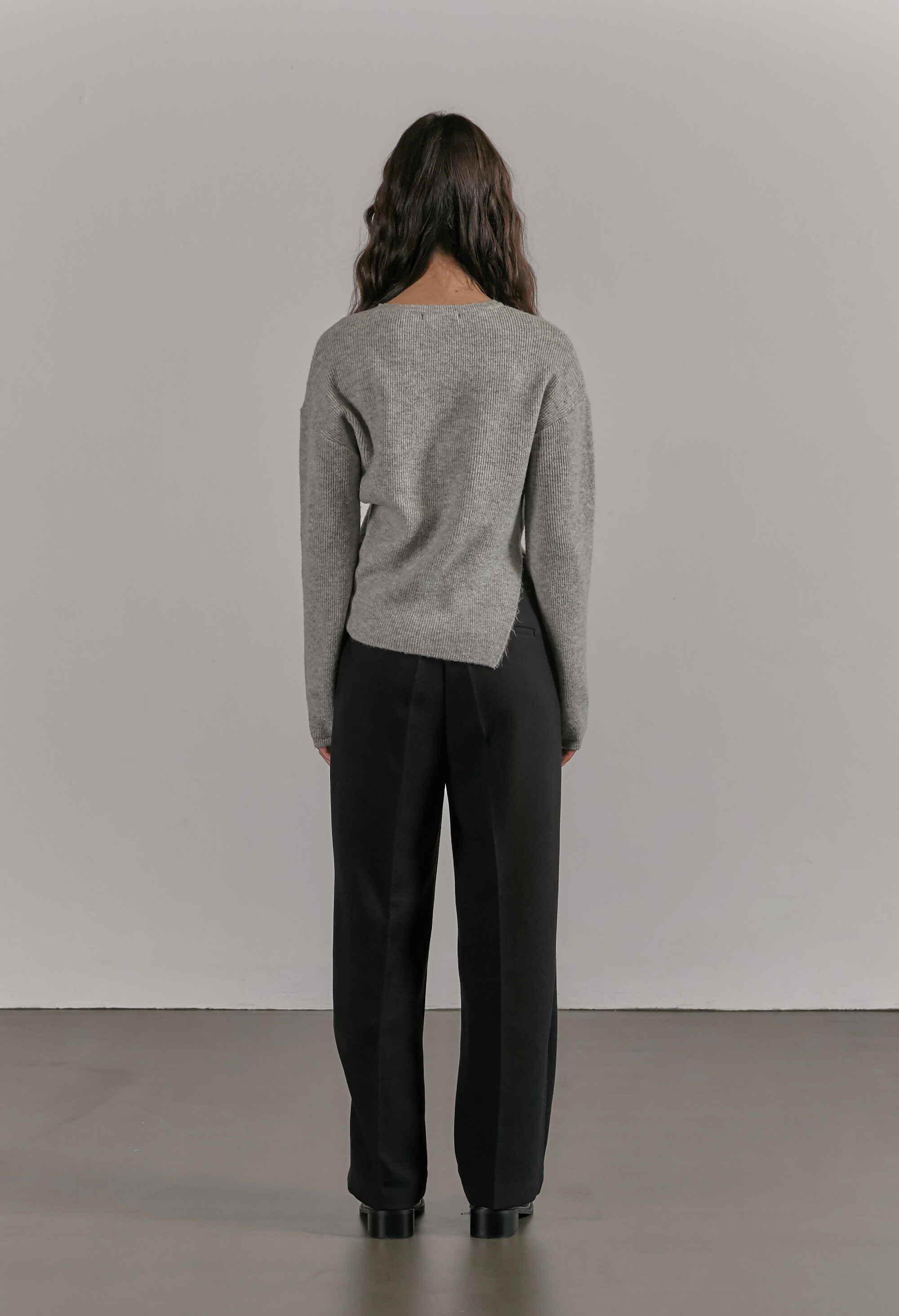 - 우측 옆라인 사선트임 포인트 라운드 니트