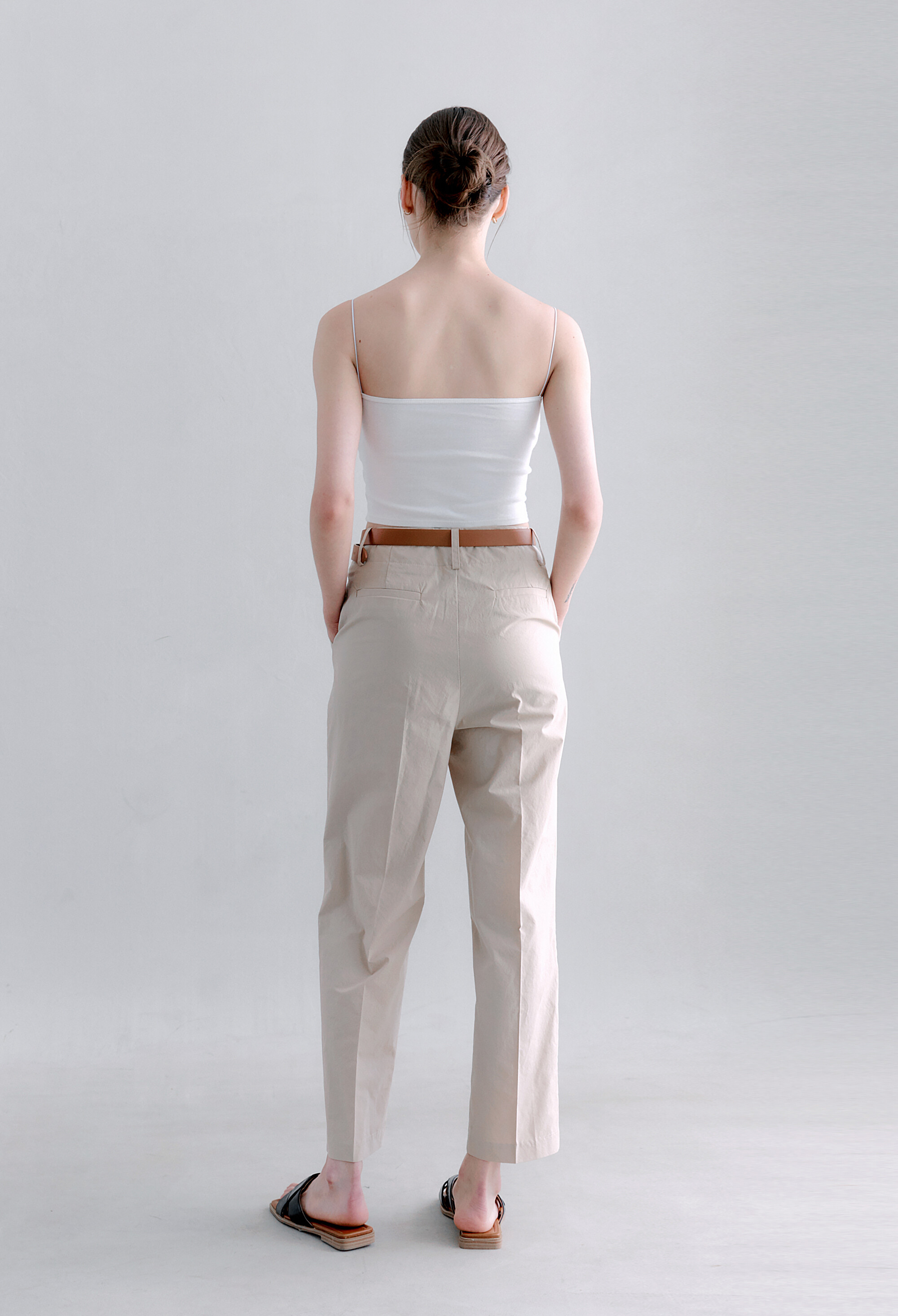 - 와이드한 실루엣의 테이퍼드 핏 코튼 팬츠