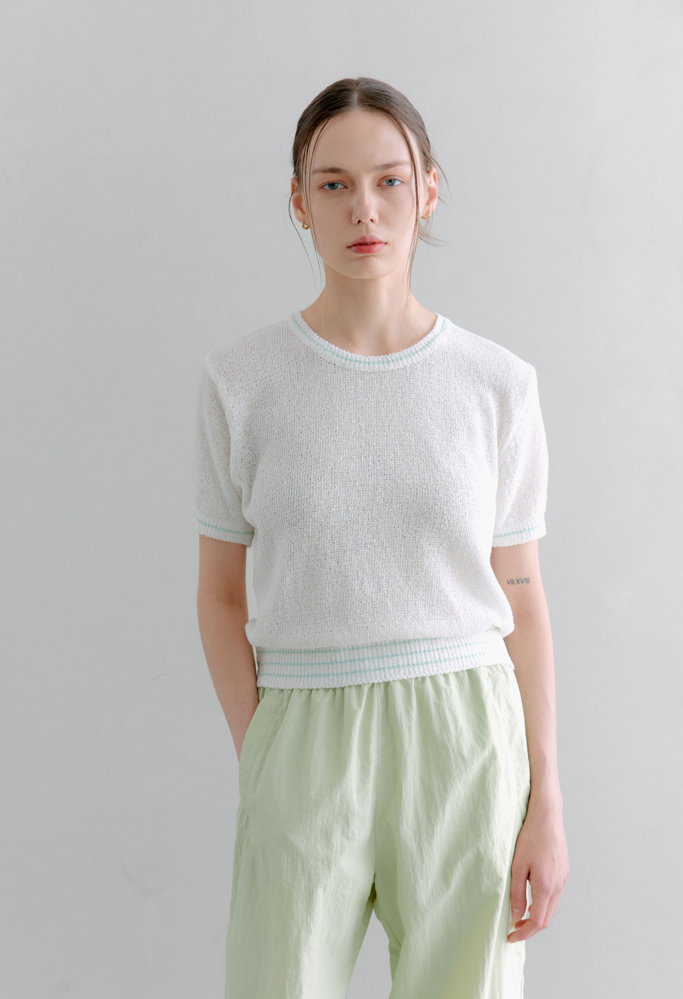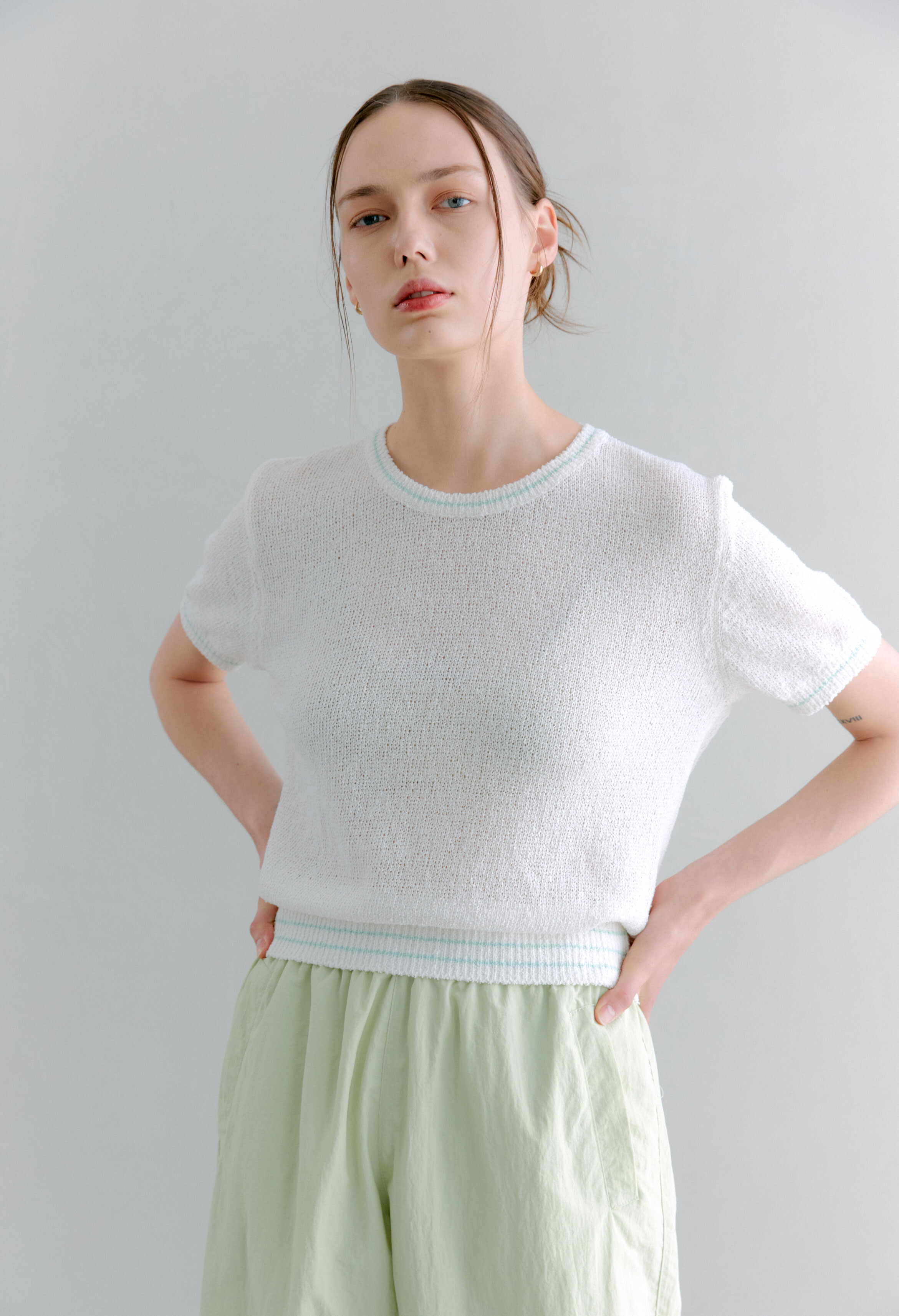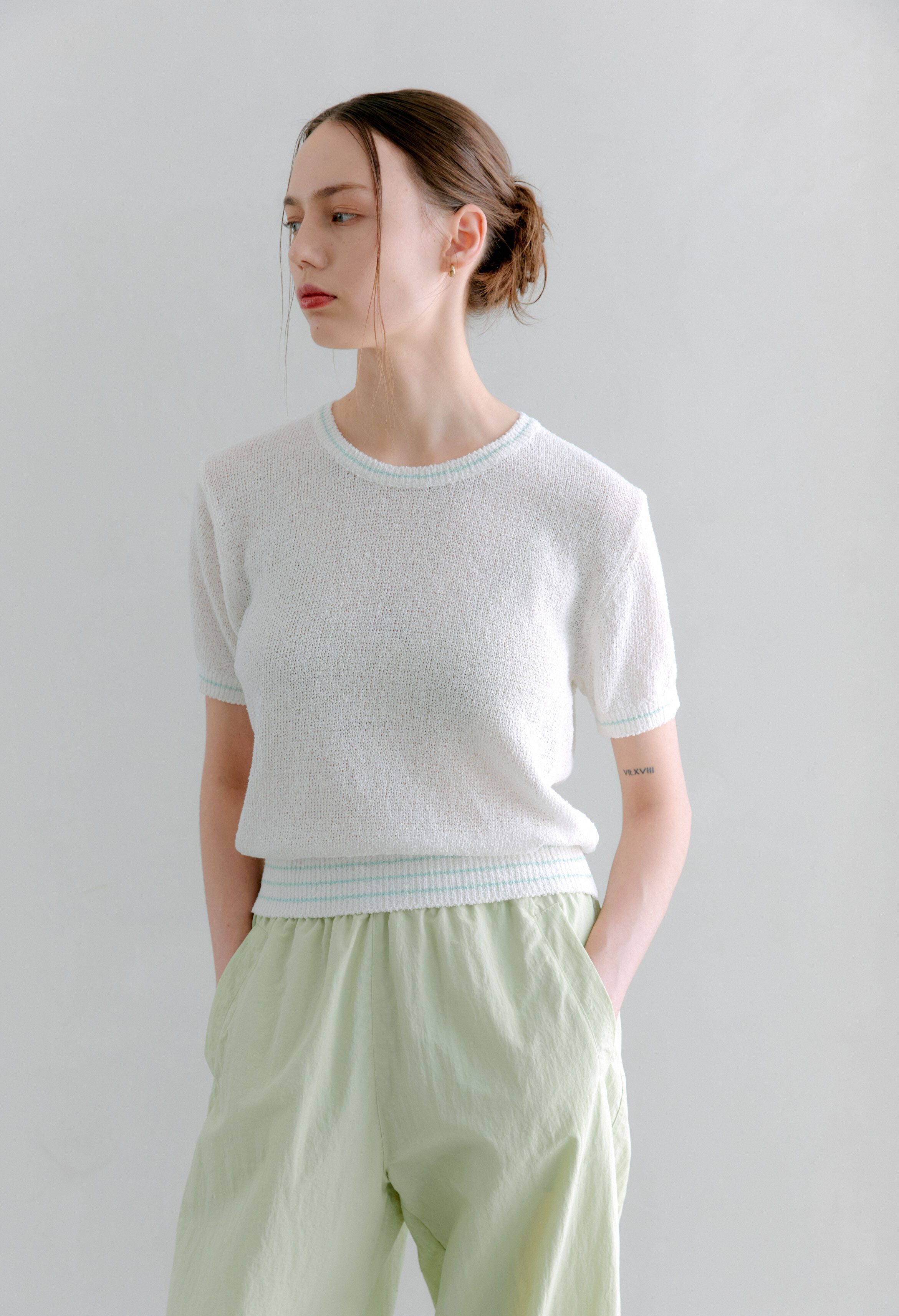 - 코튼 블렌드 원사로 제작된 라운드니트