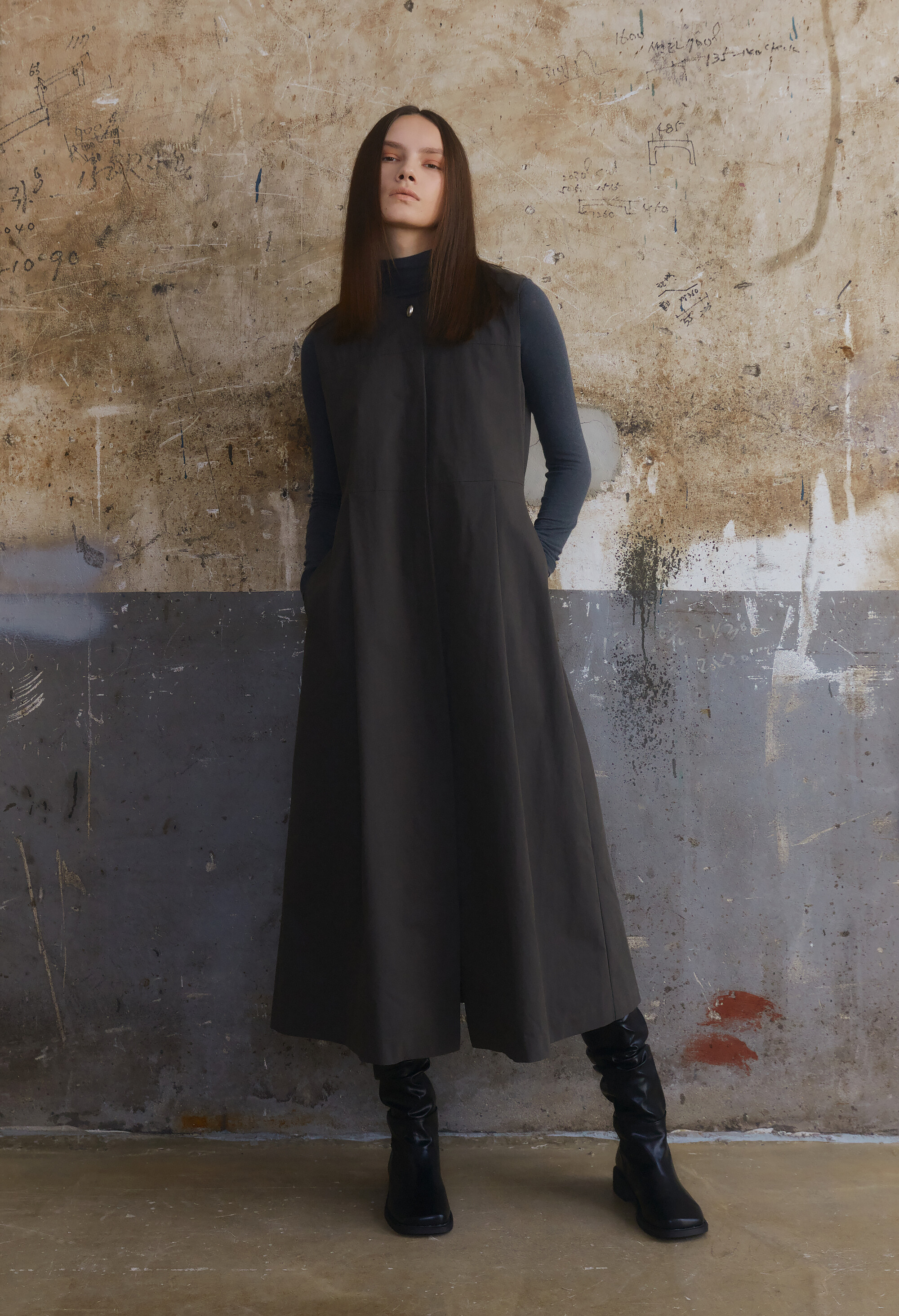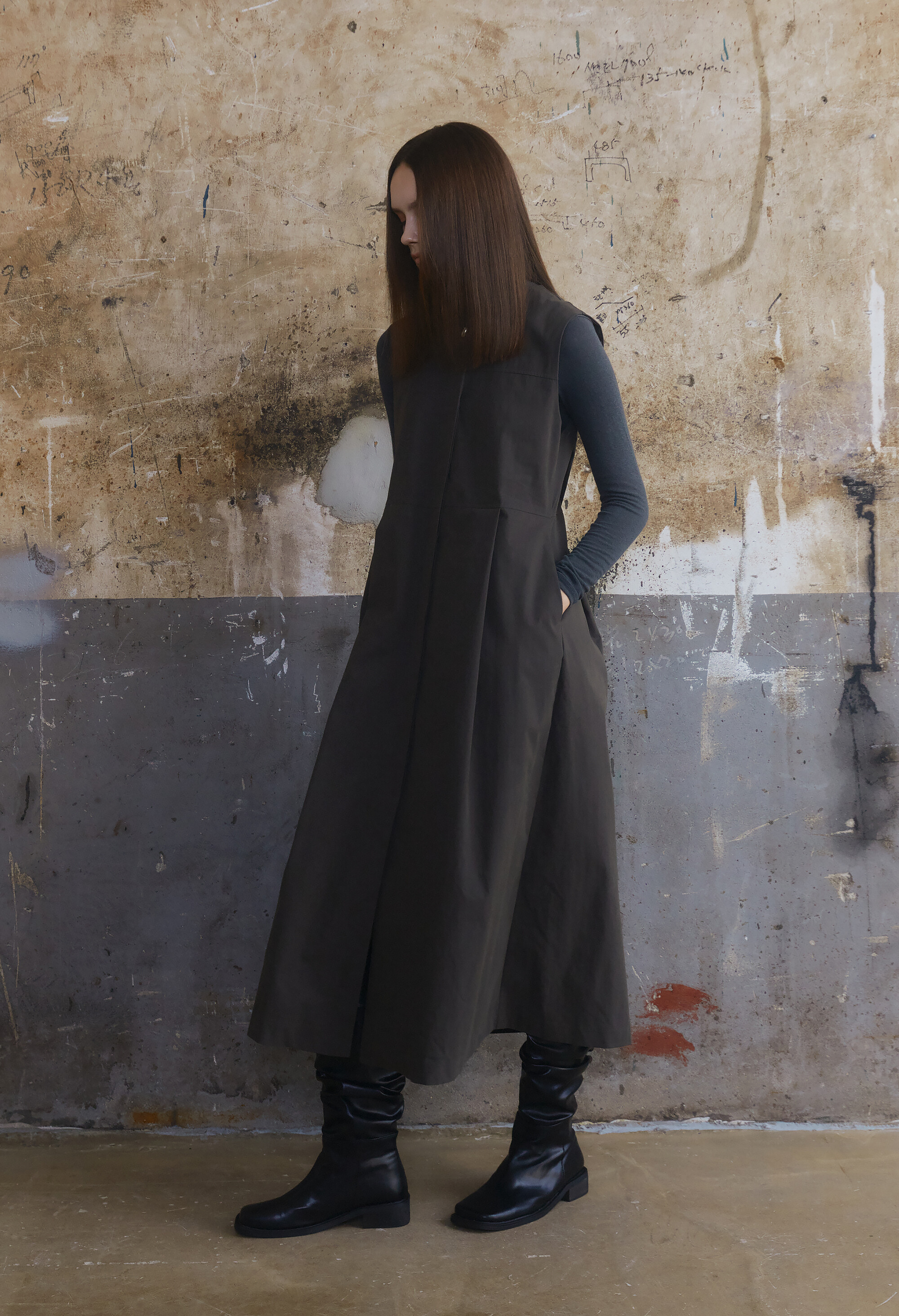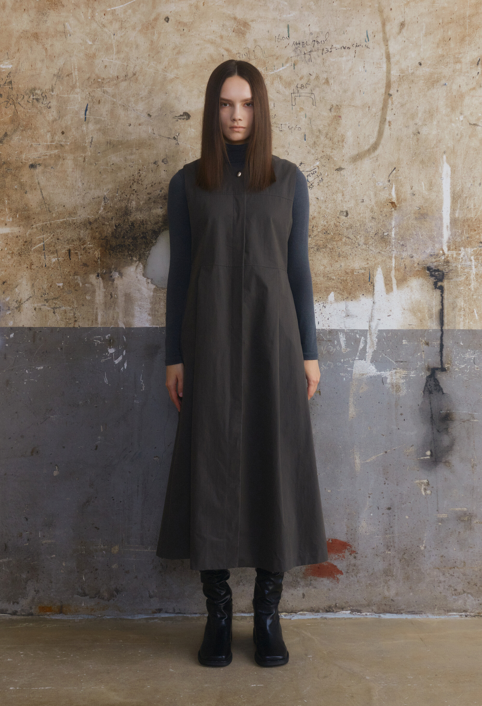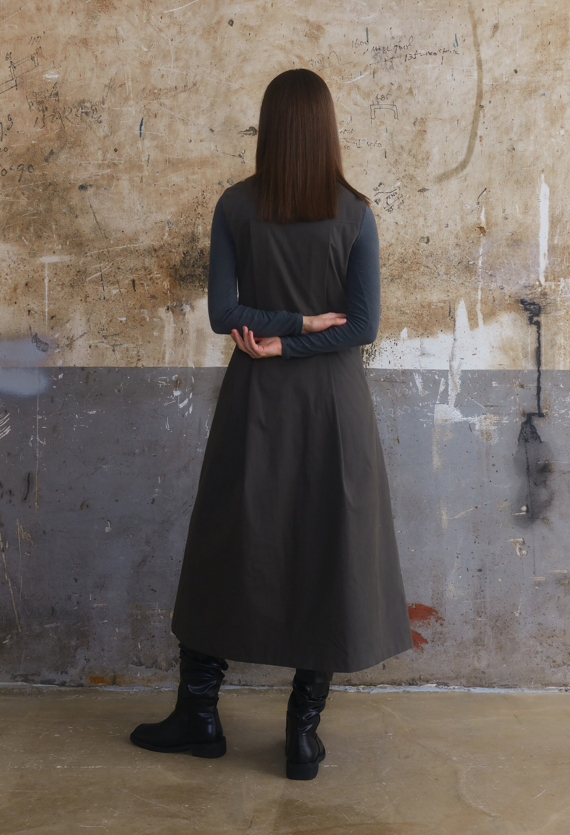 - 롱한 기장감의 베스트겸 셔츠형 원피스