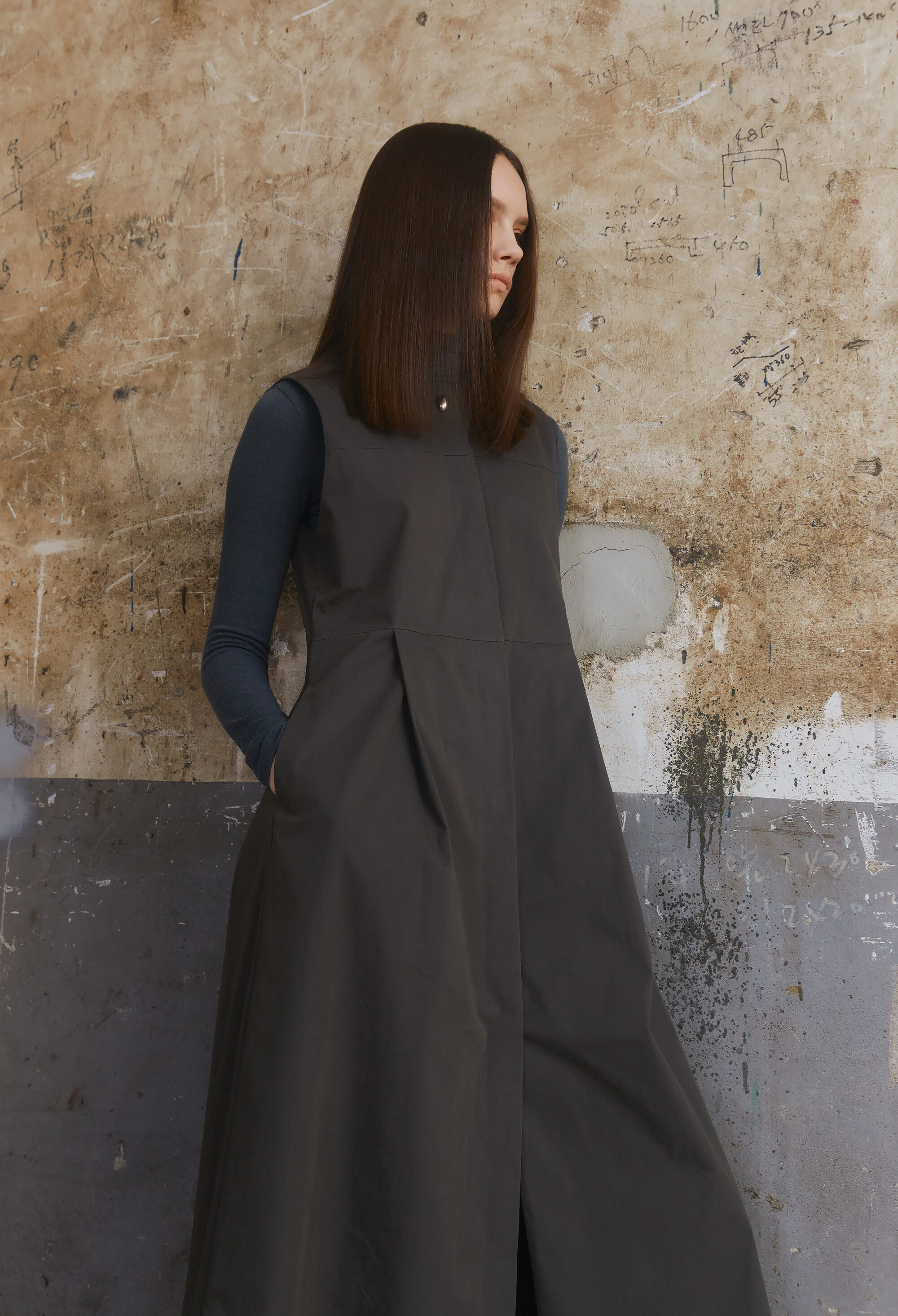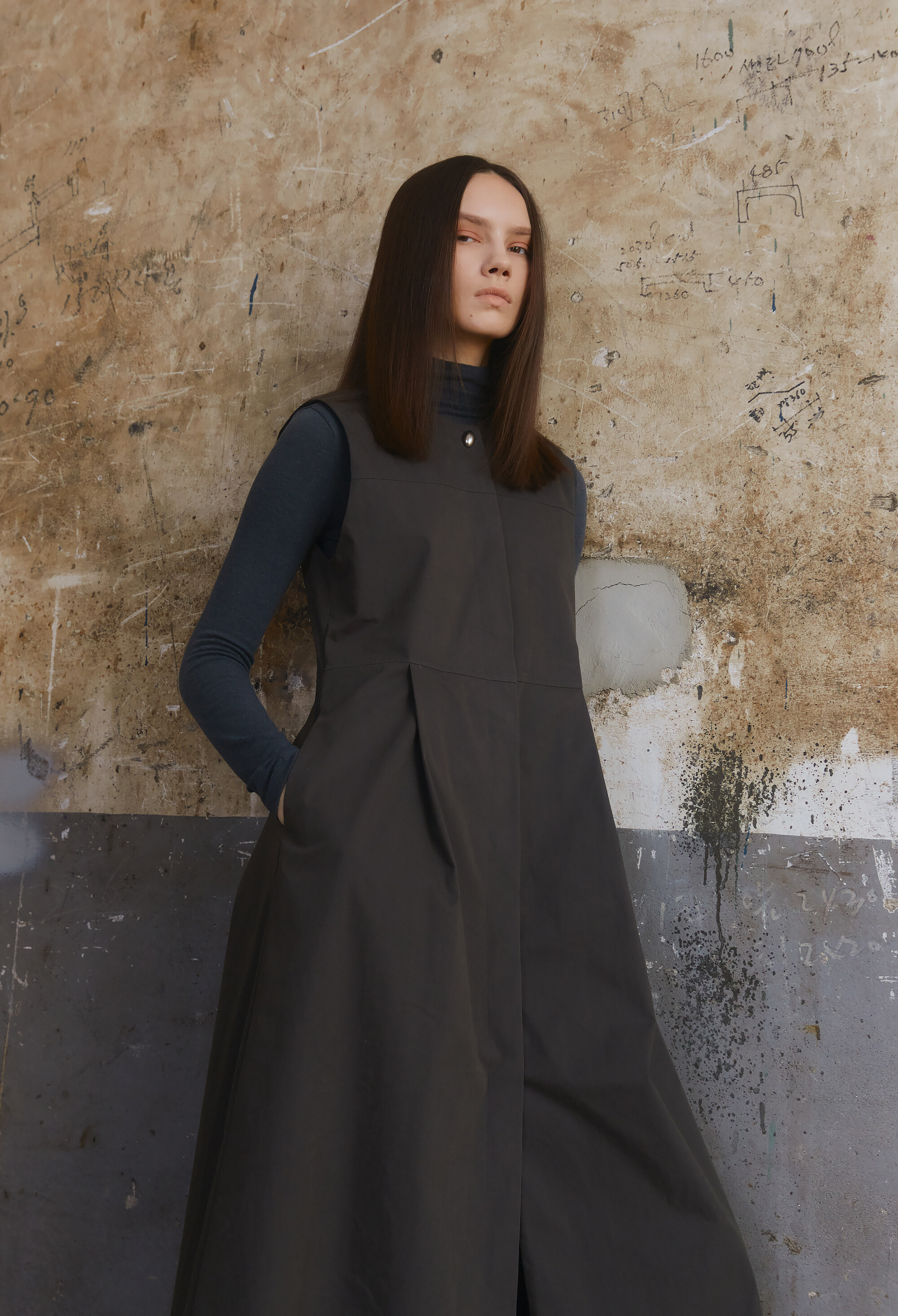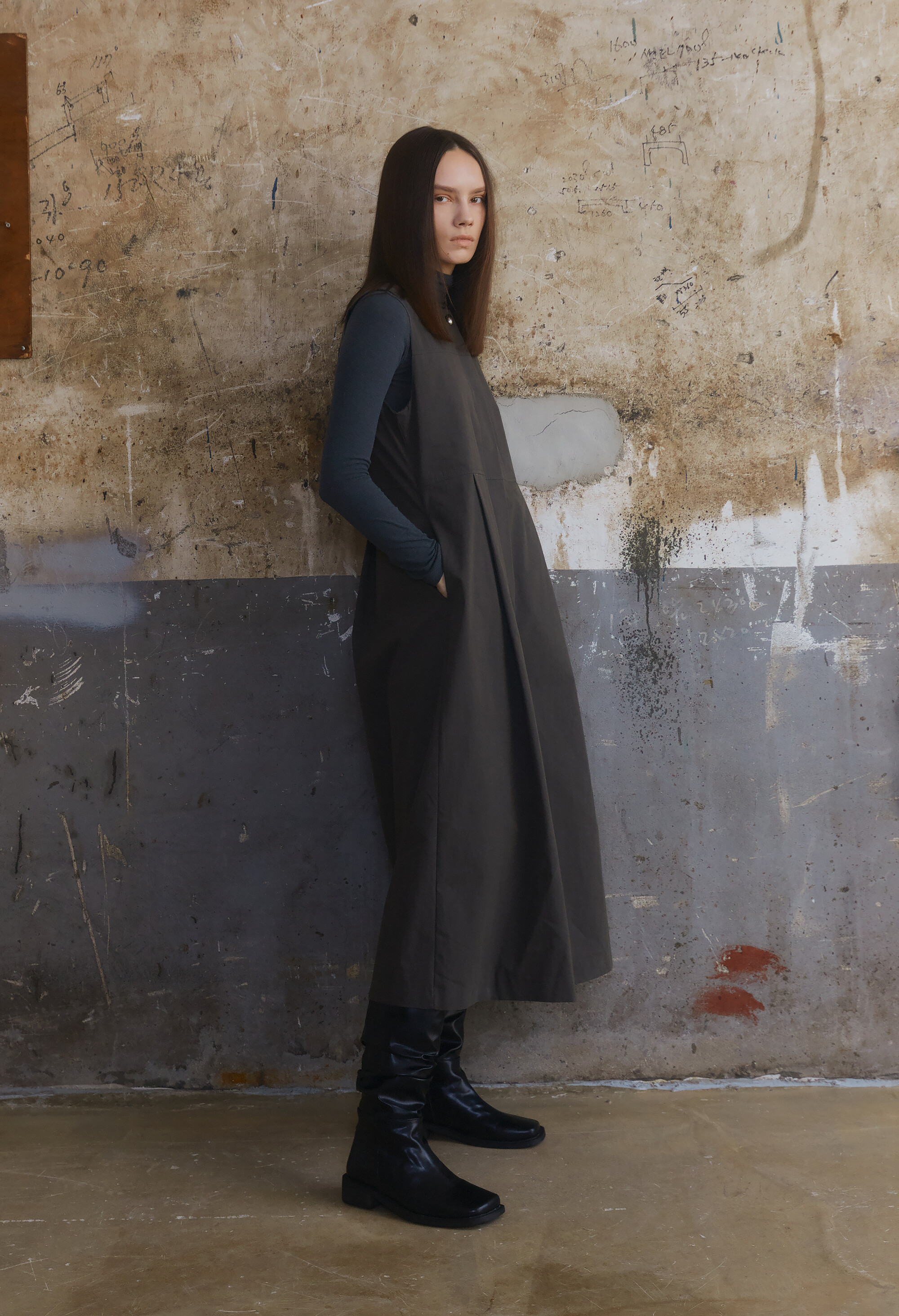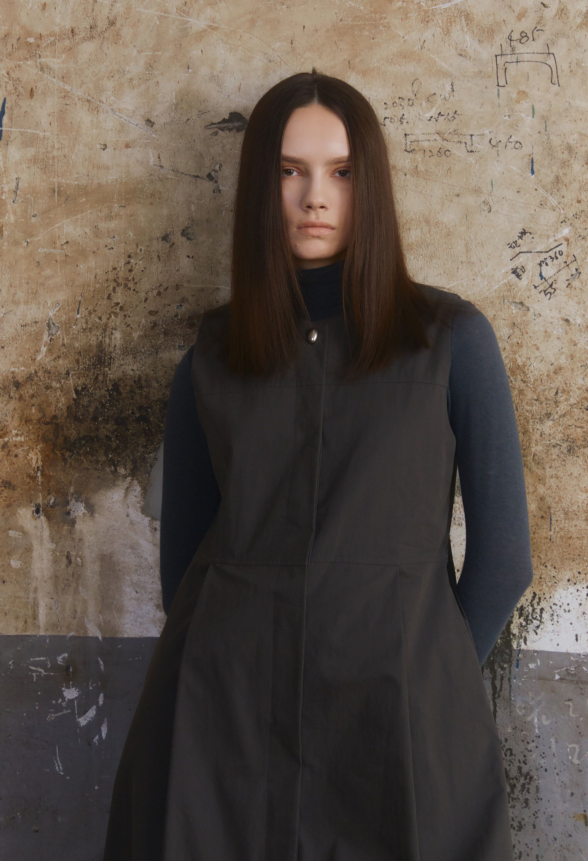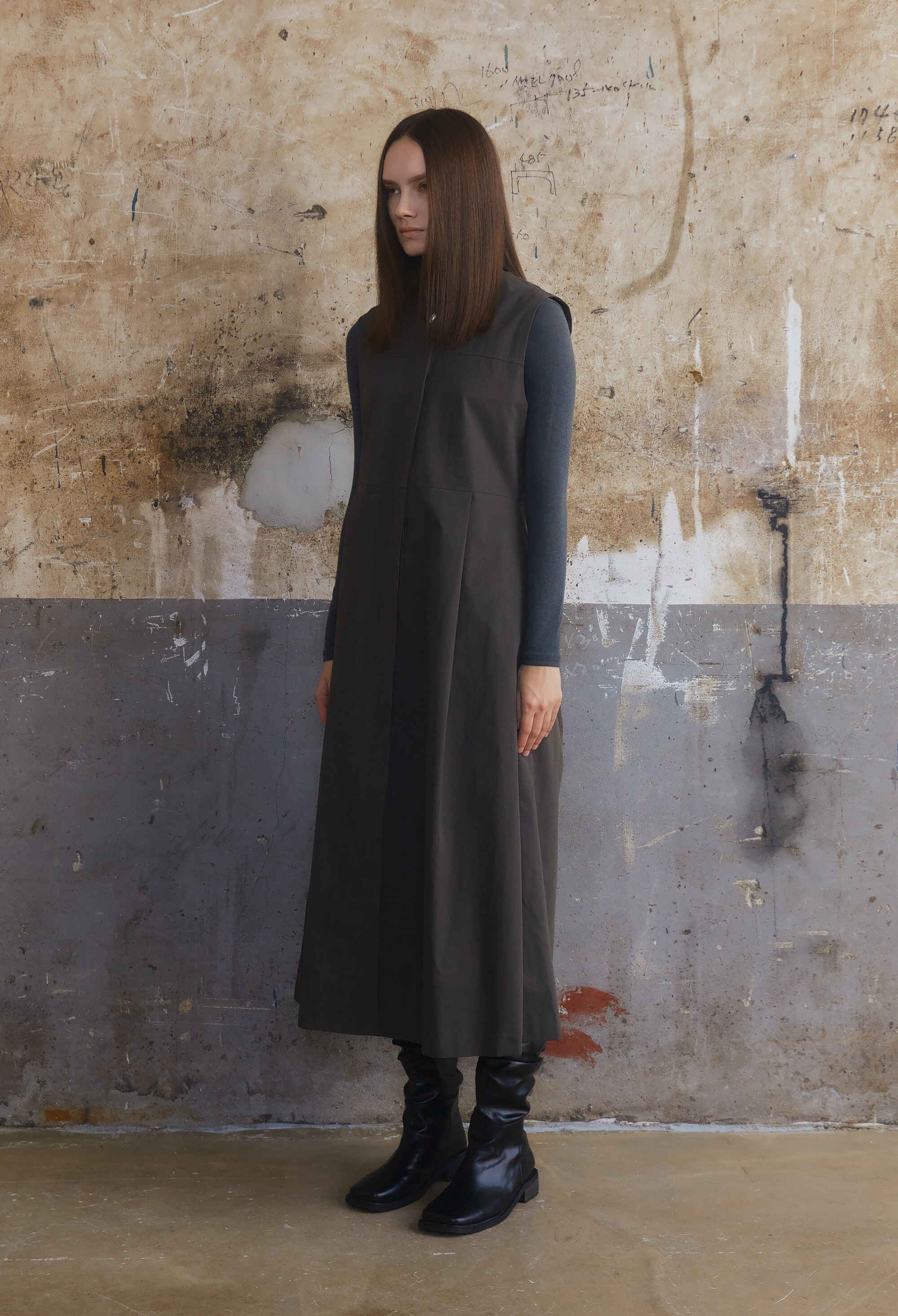- 롱한 기장감의 베스트겸 셔츠형 원피스