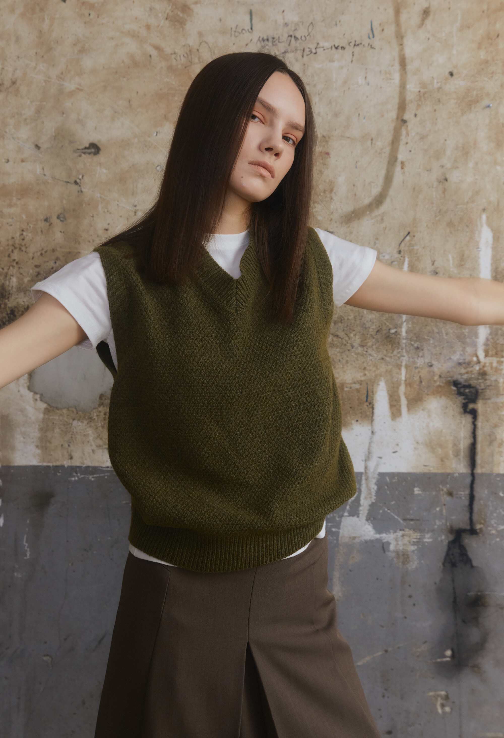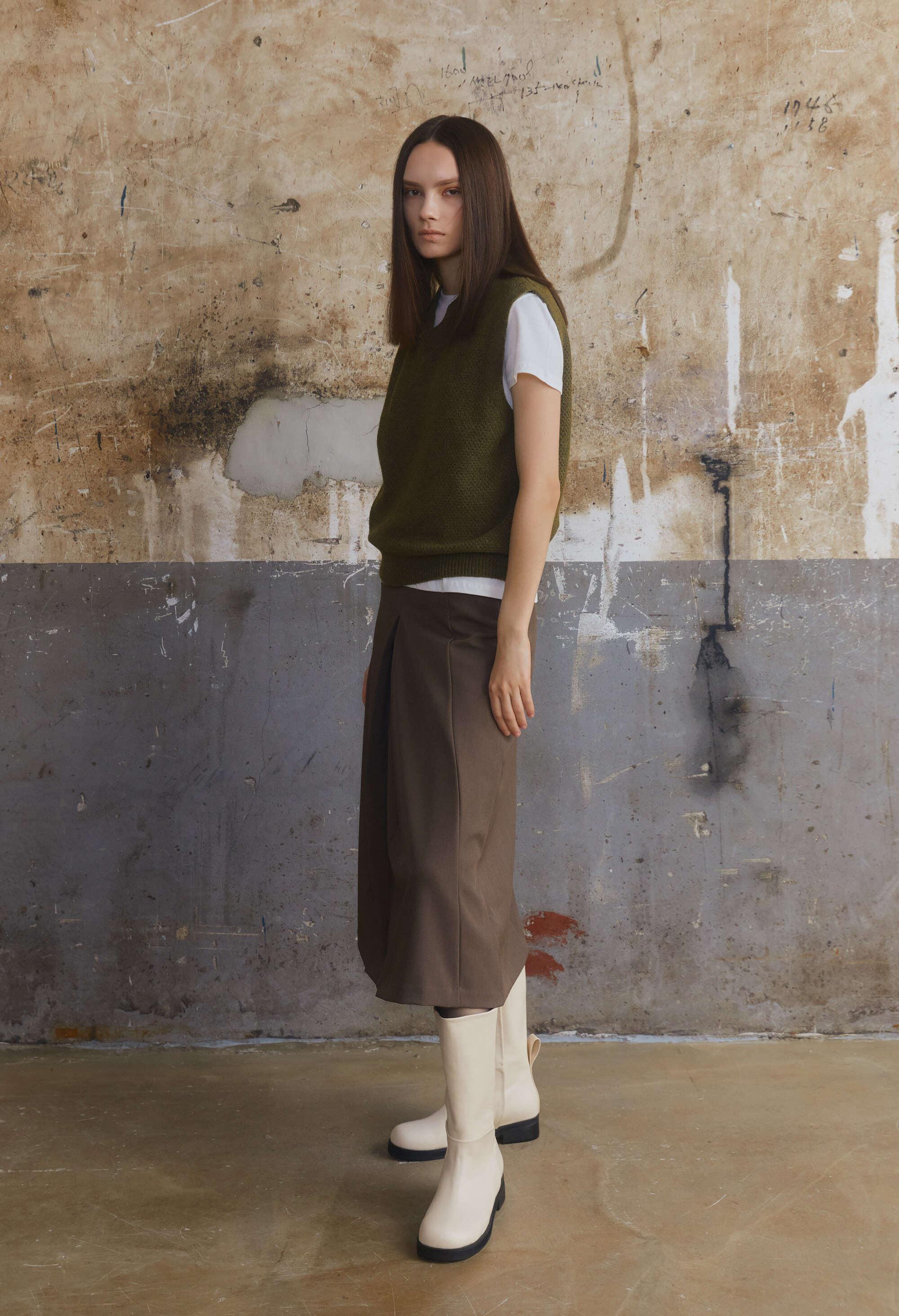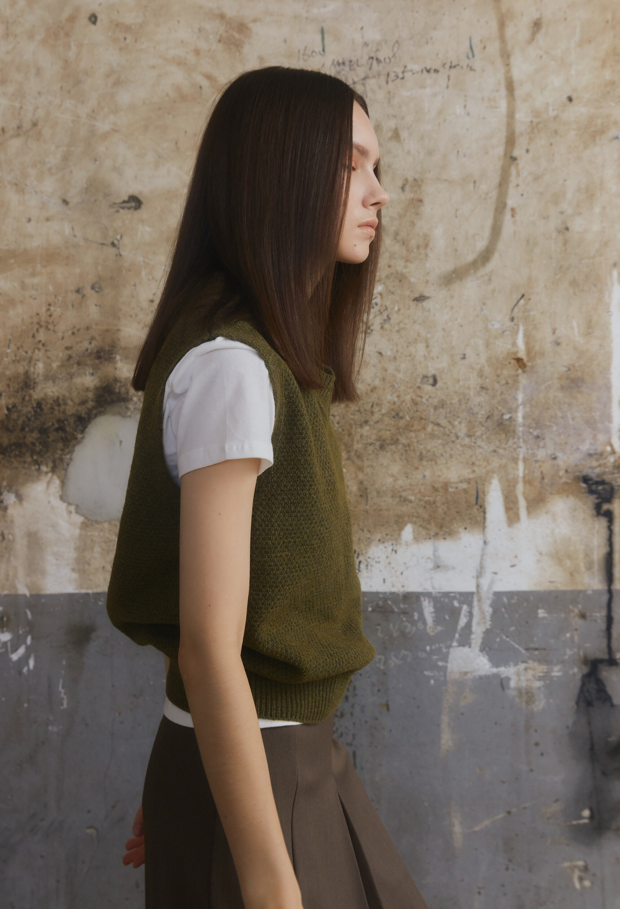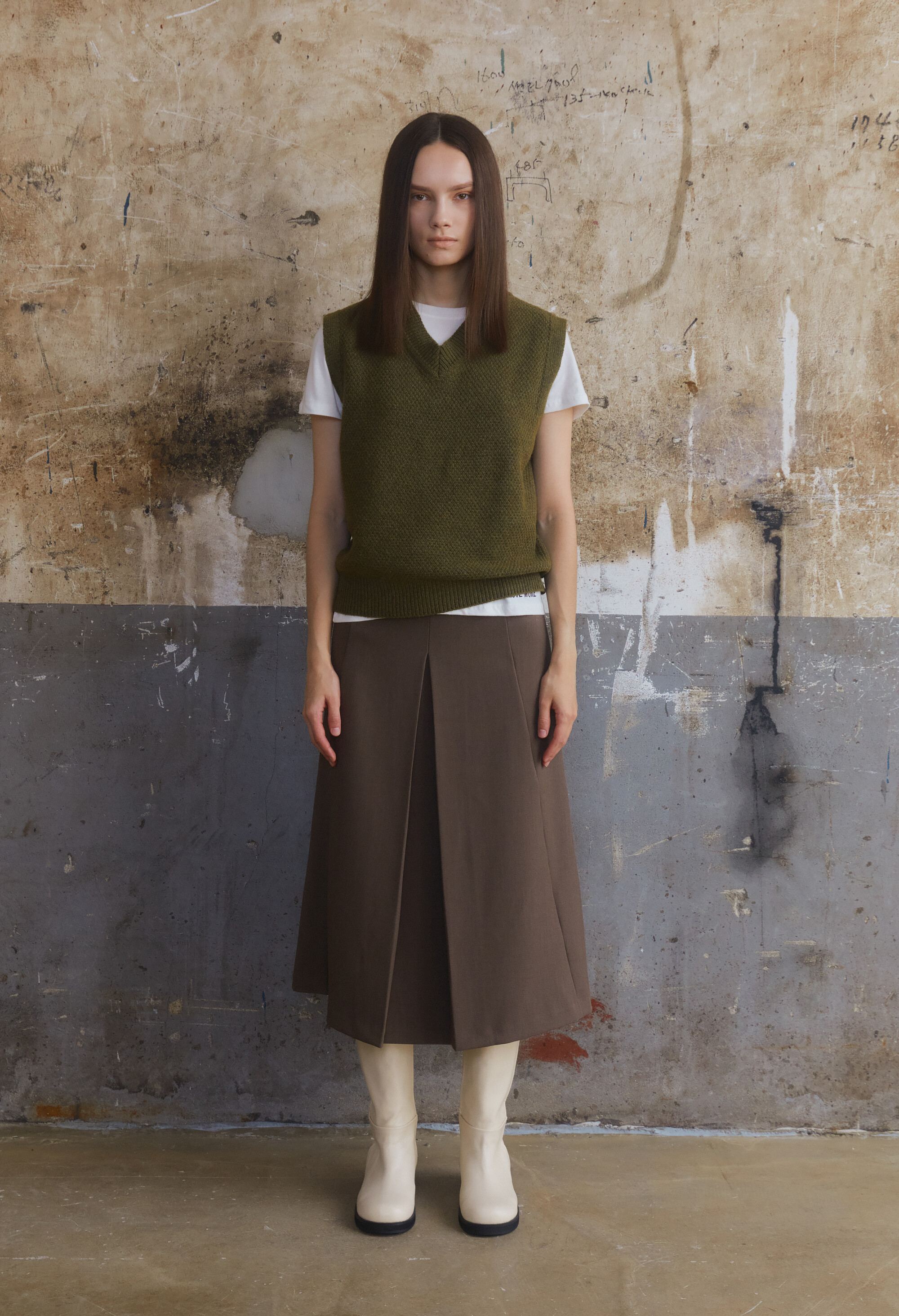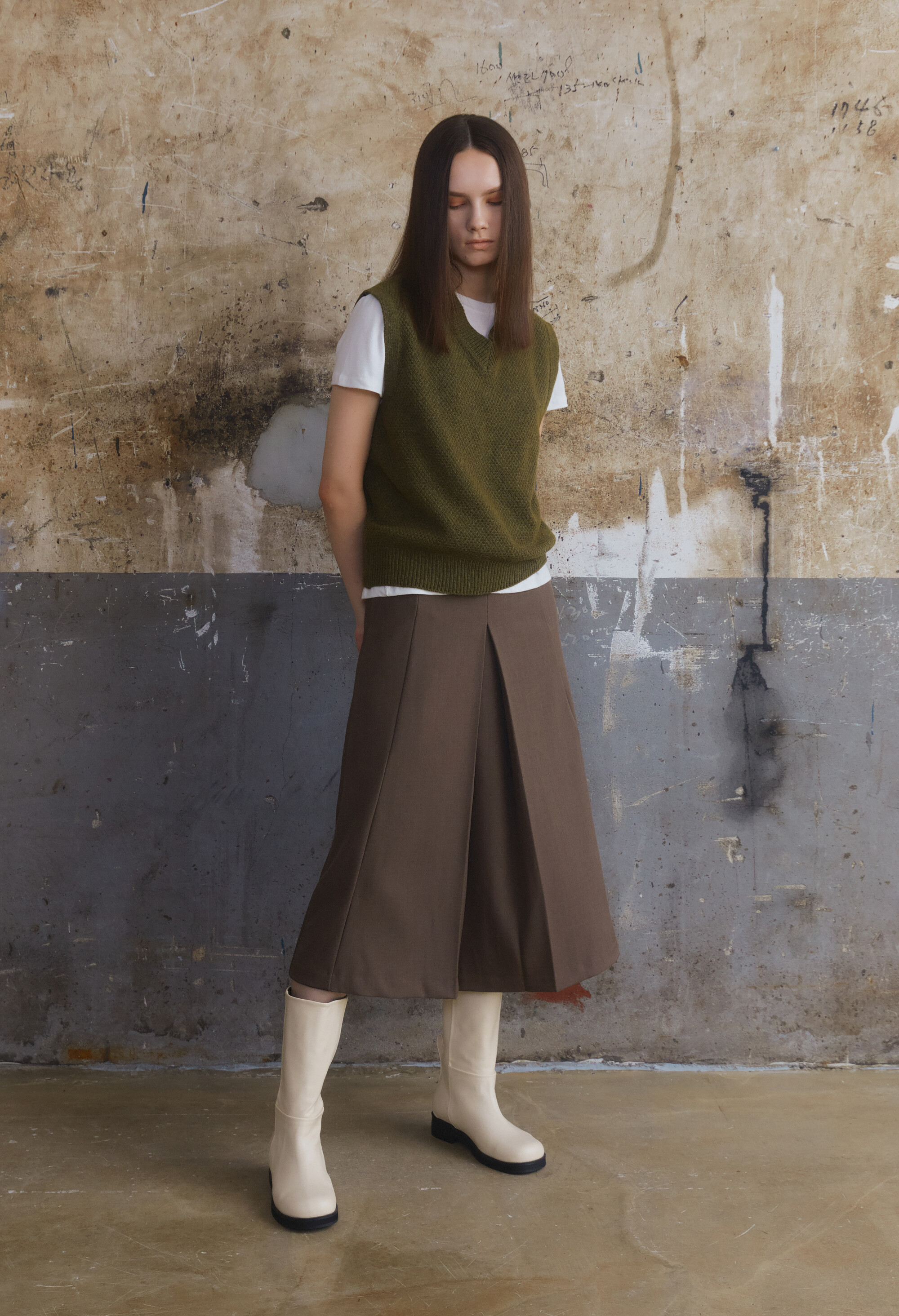 [E504] Wool V-Neck Vest - Khaki