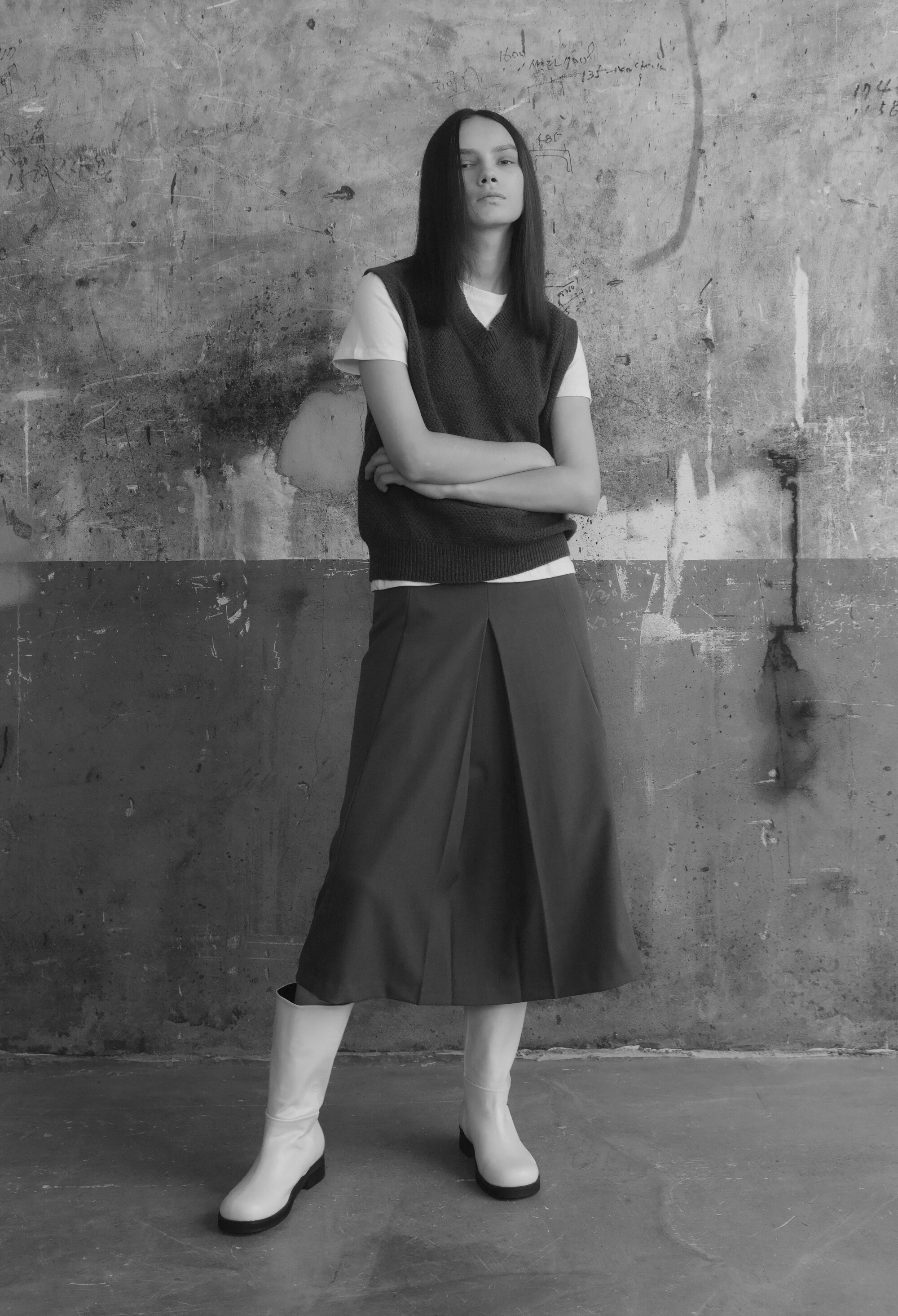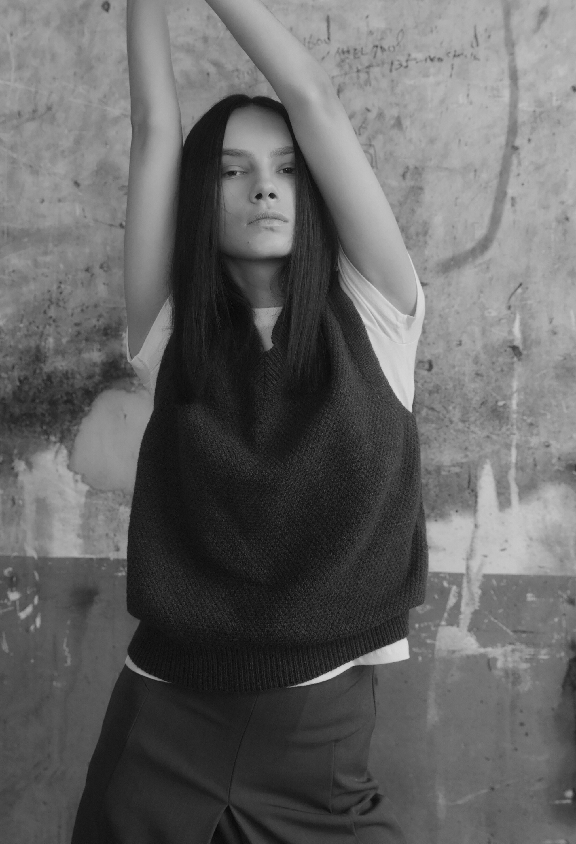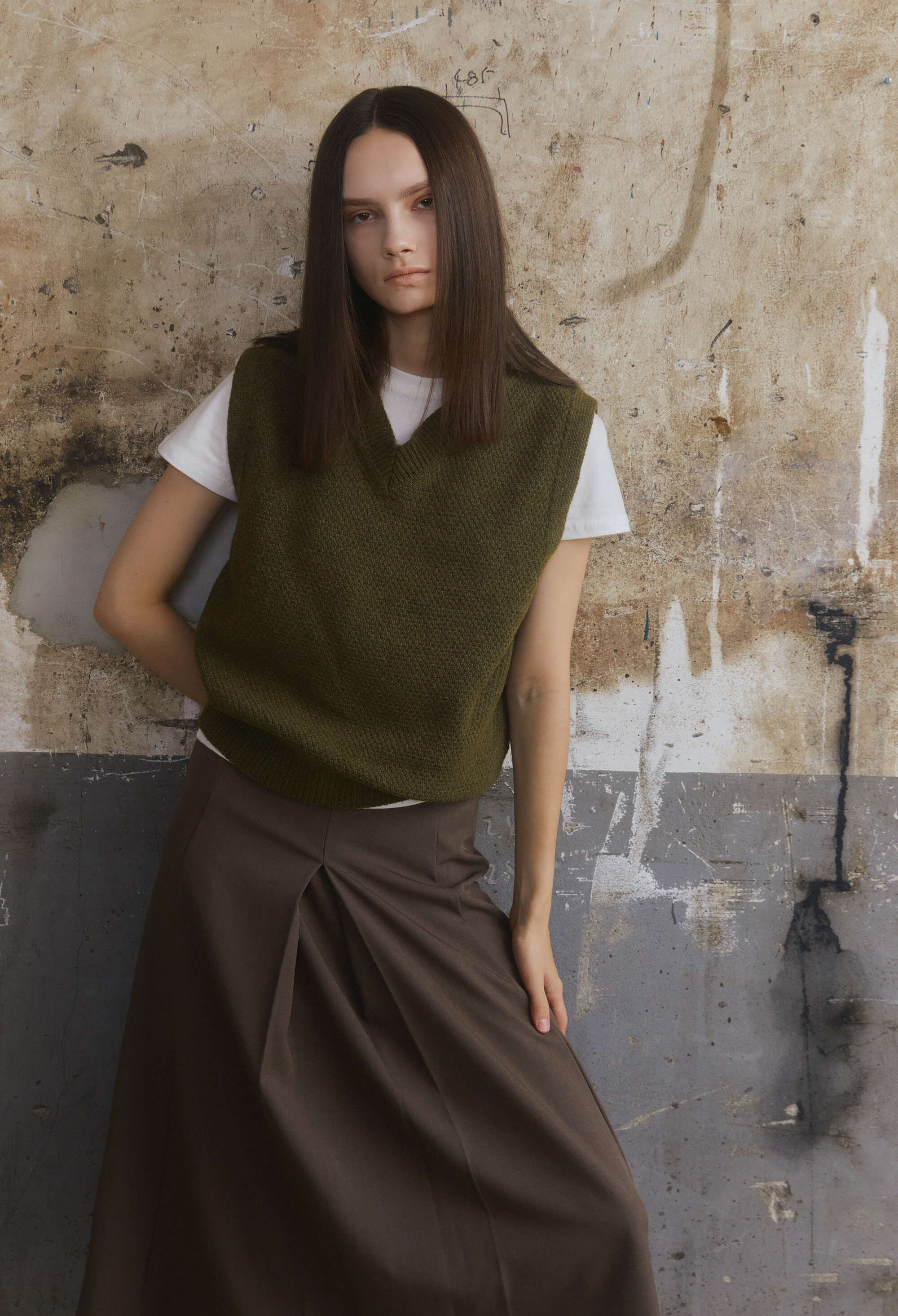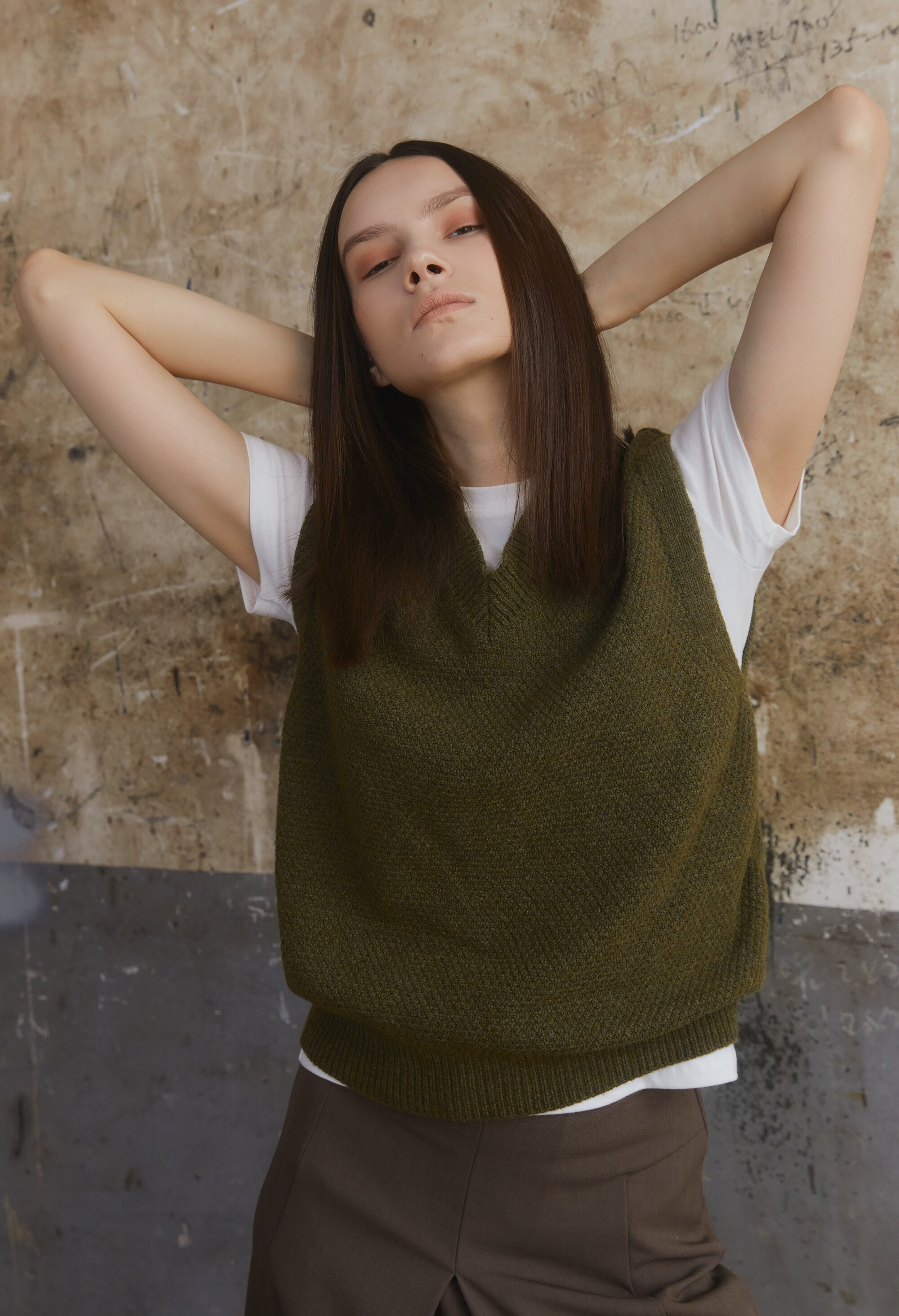 - 넉넉한 품의 반 오버핏 니트조끼
