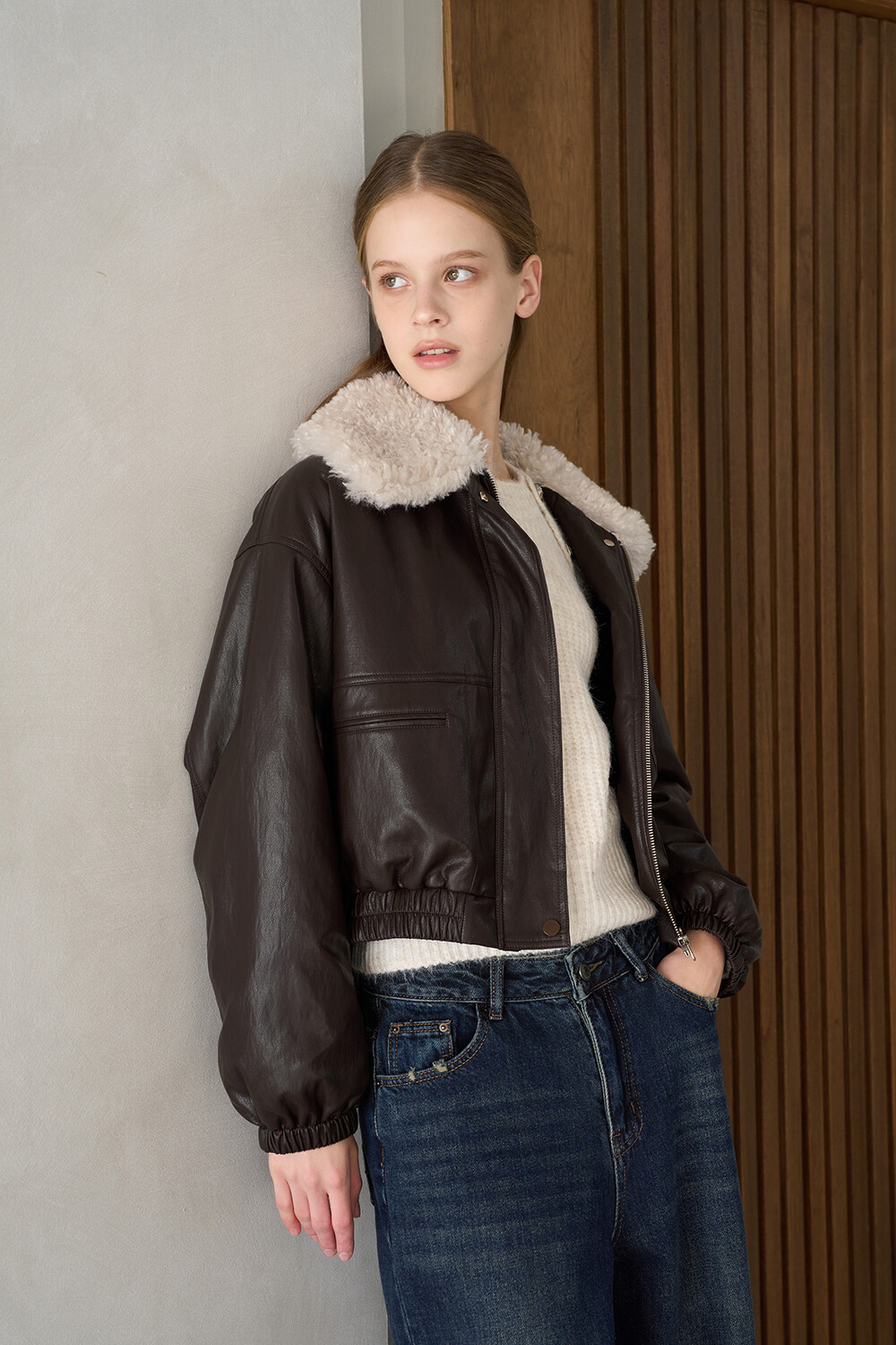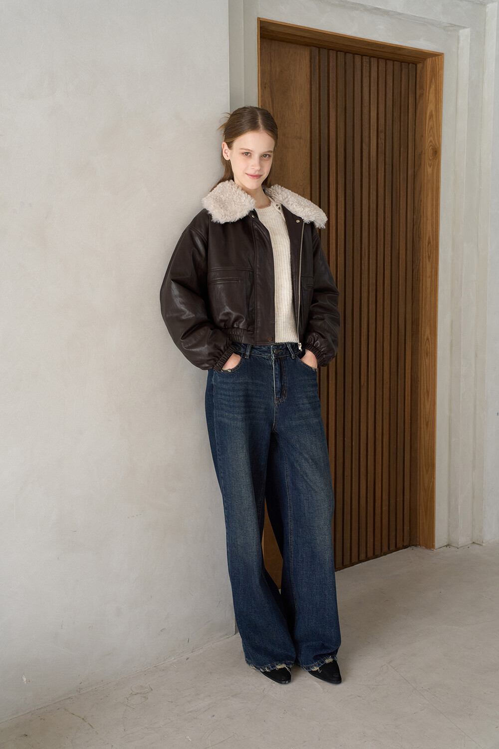 - 세련된 덕다운 퍼 카라 포인트로 고급스러운 분위기