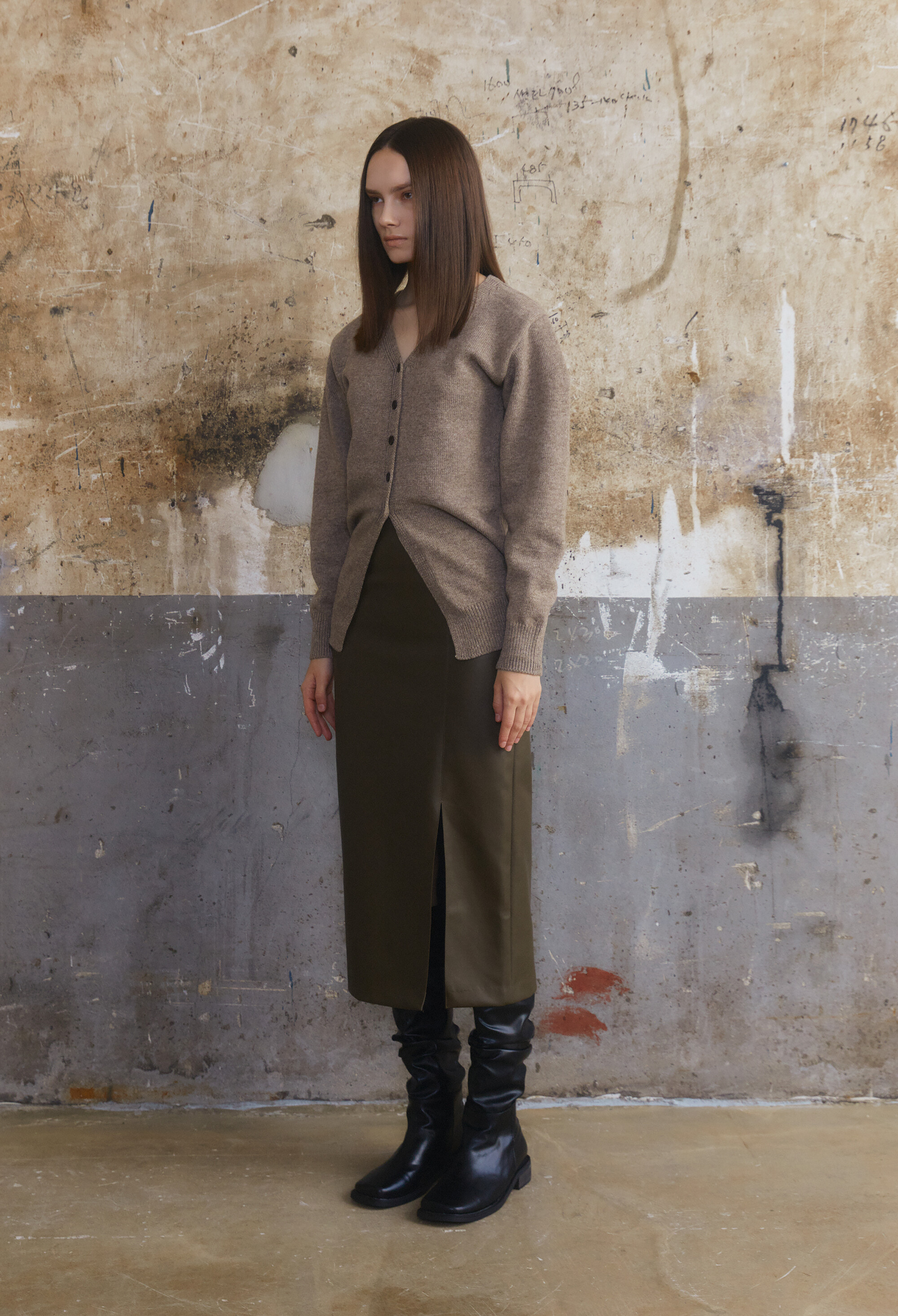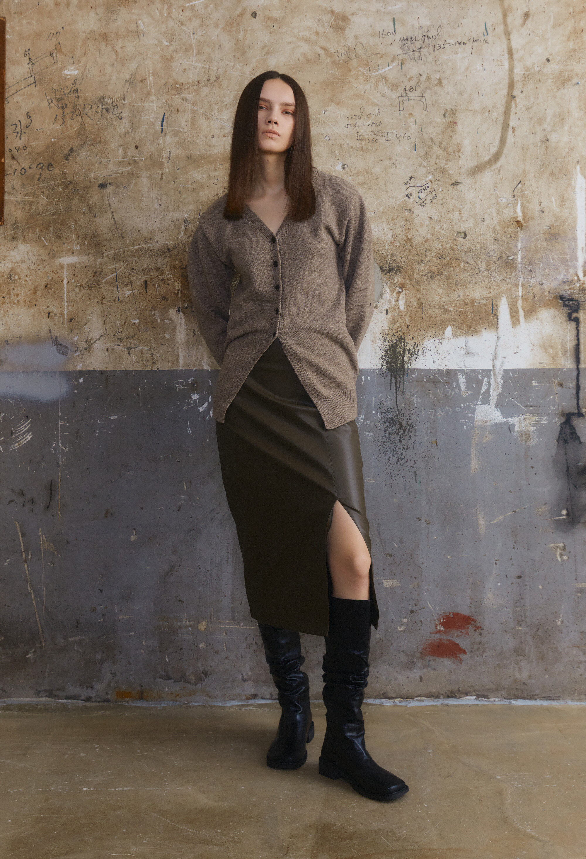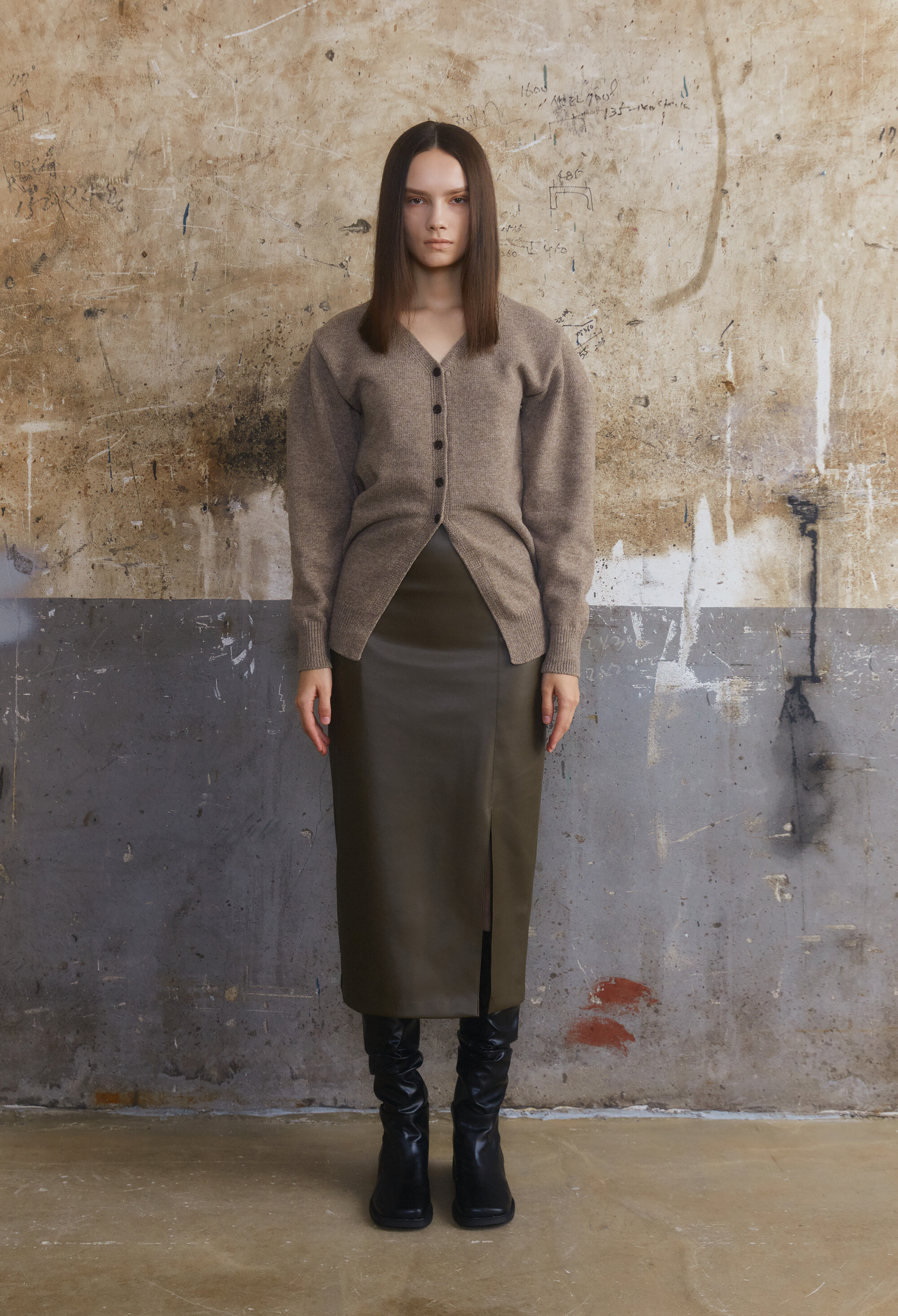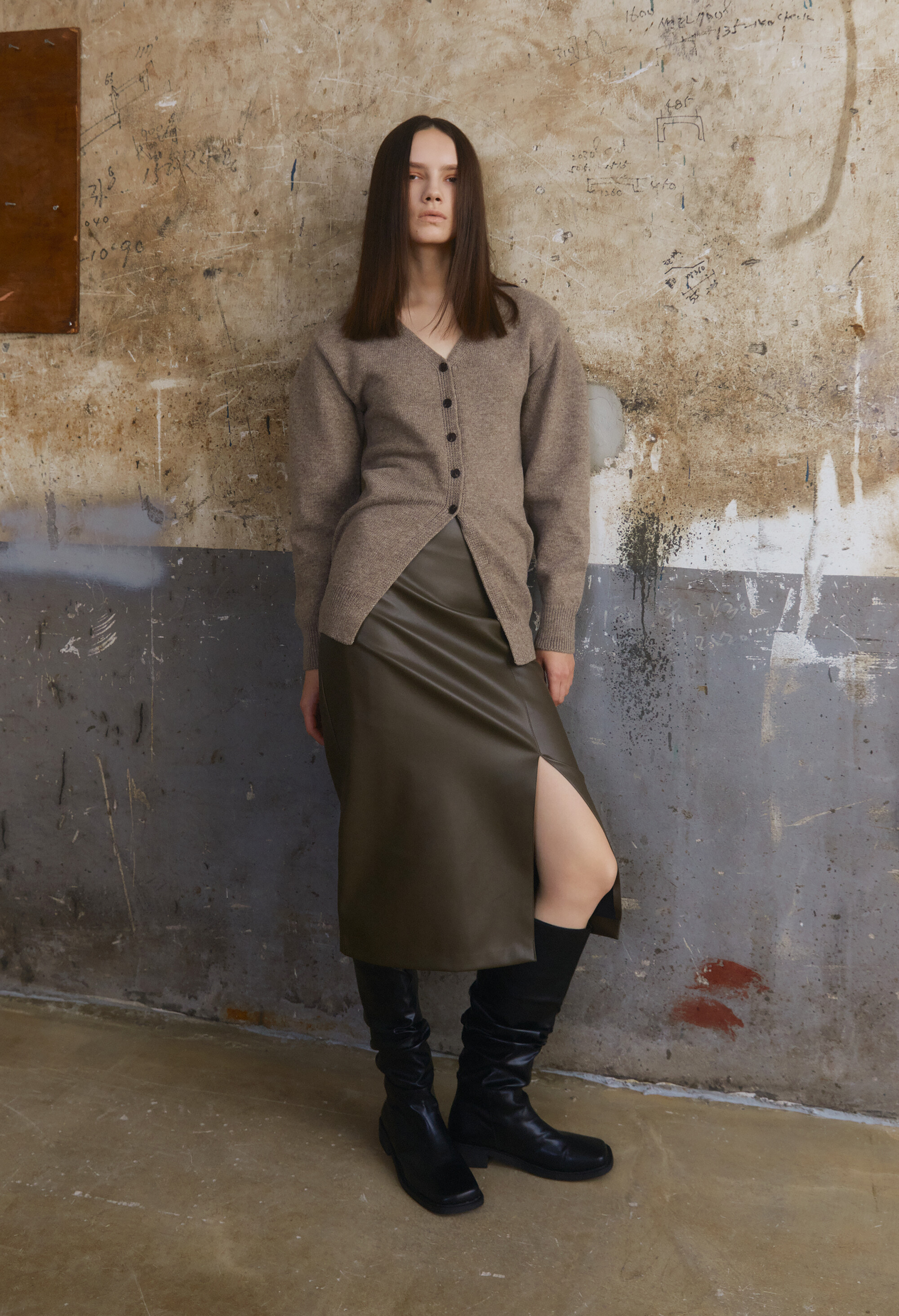 - 은은한 광택감의 에코 레더 H라인 스커트