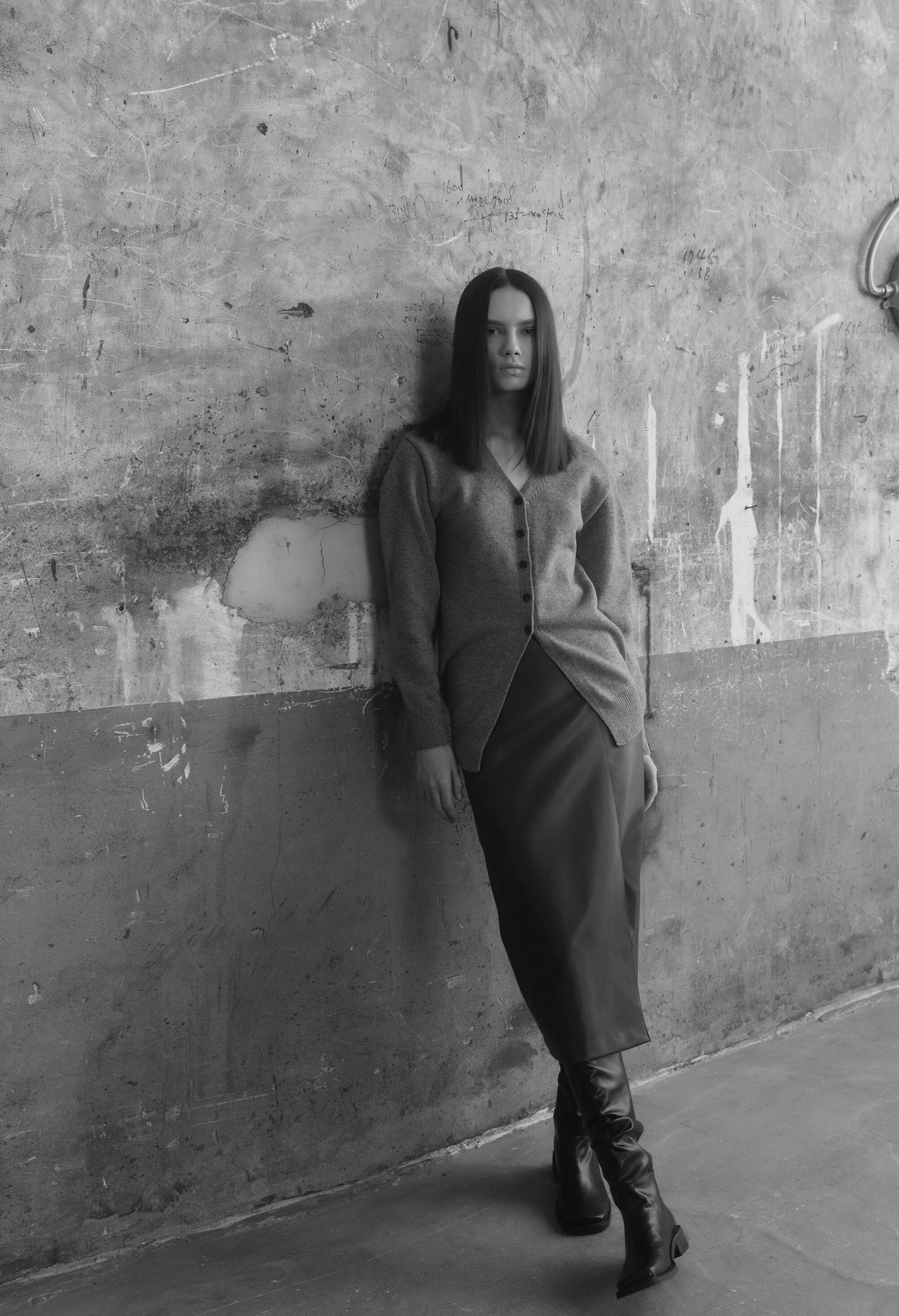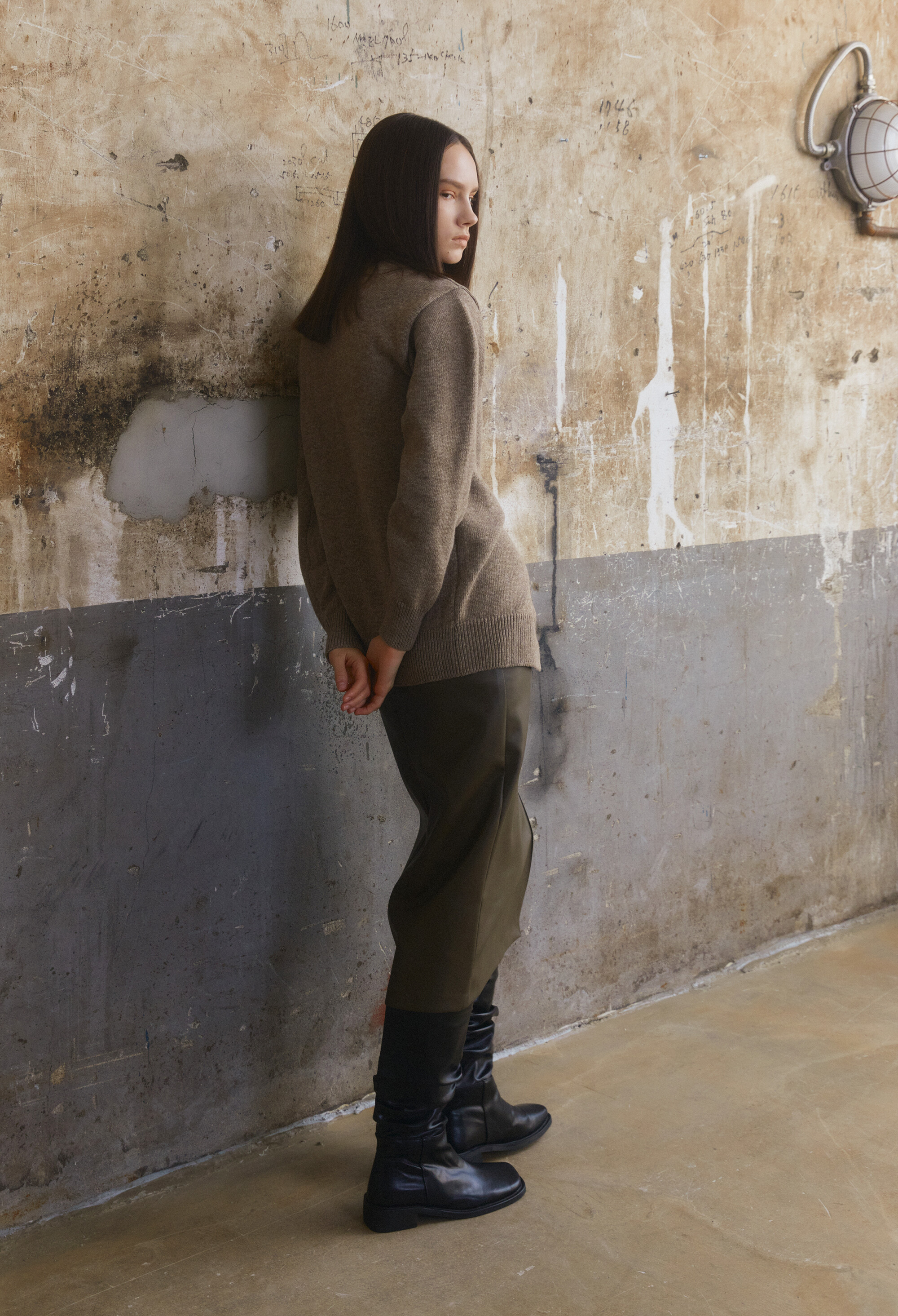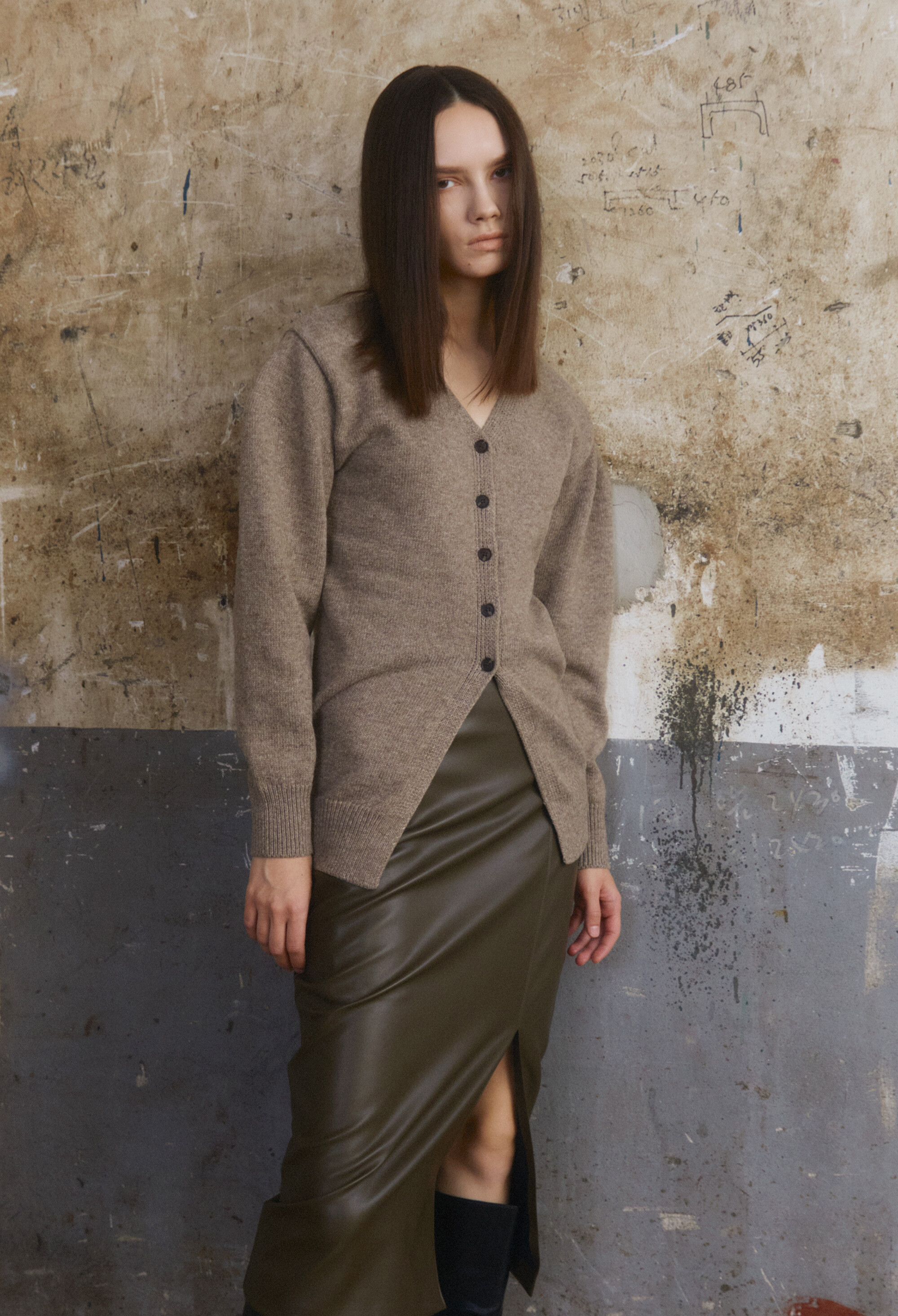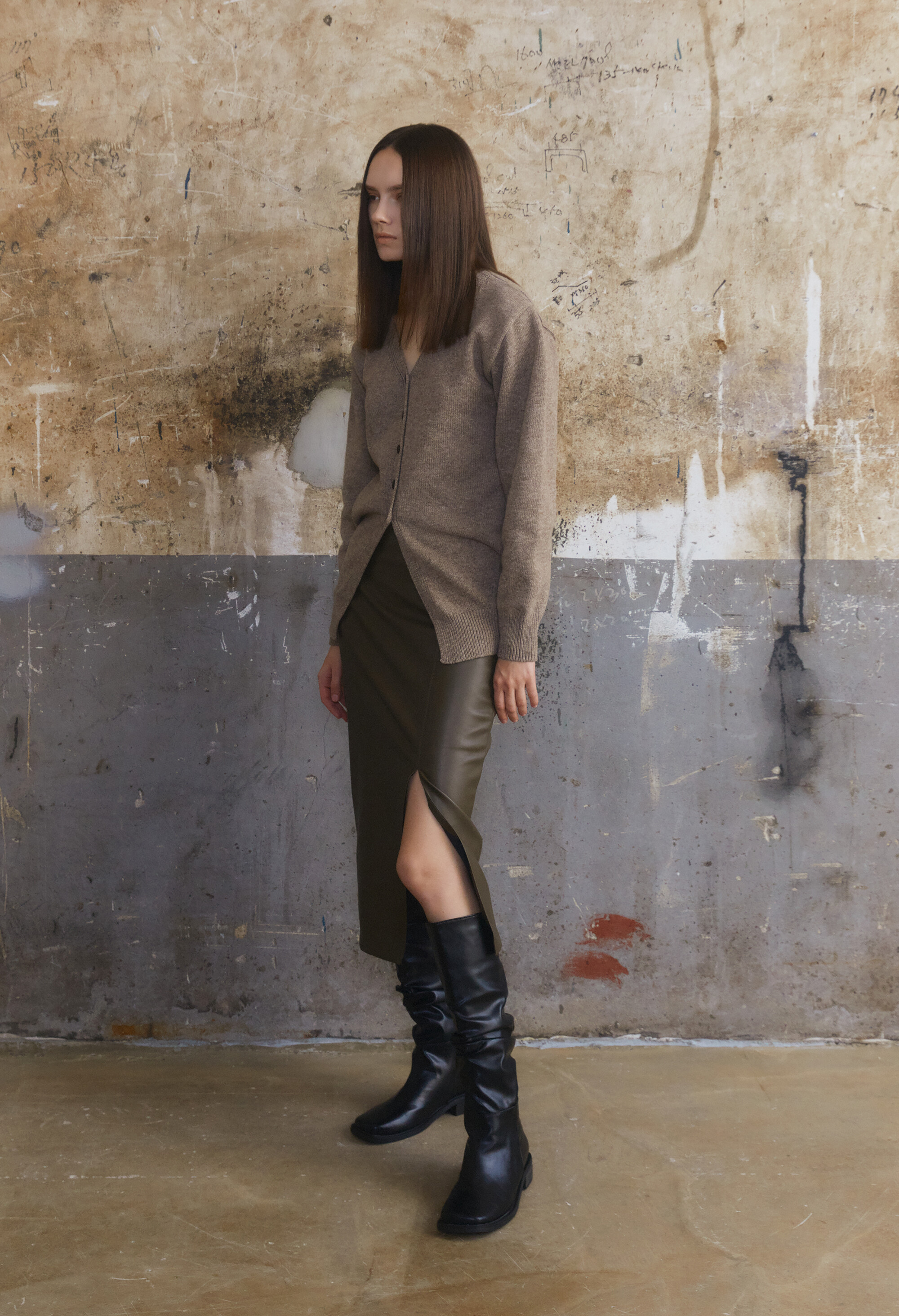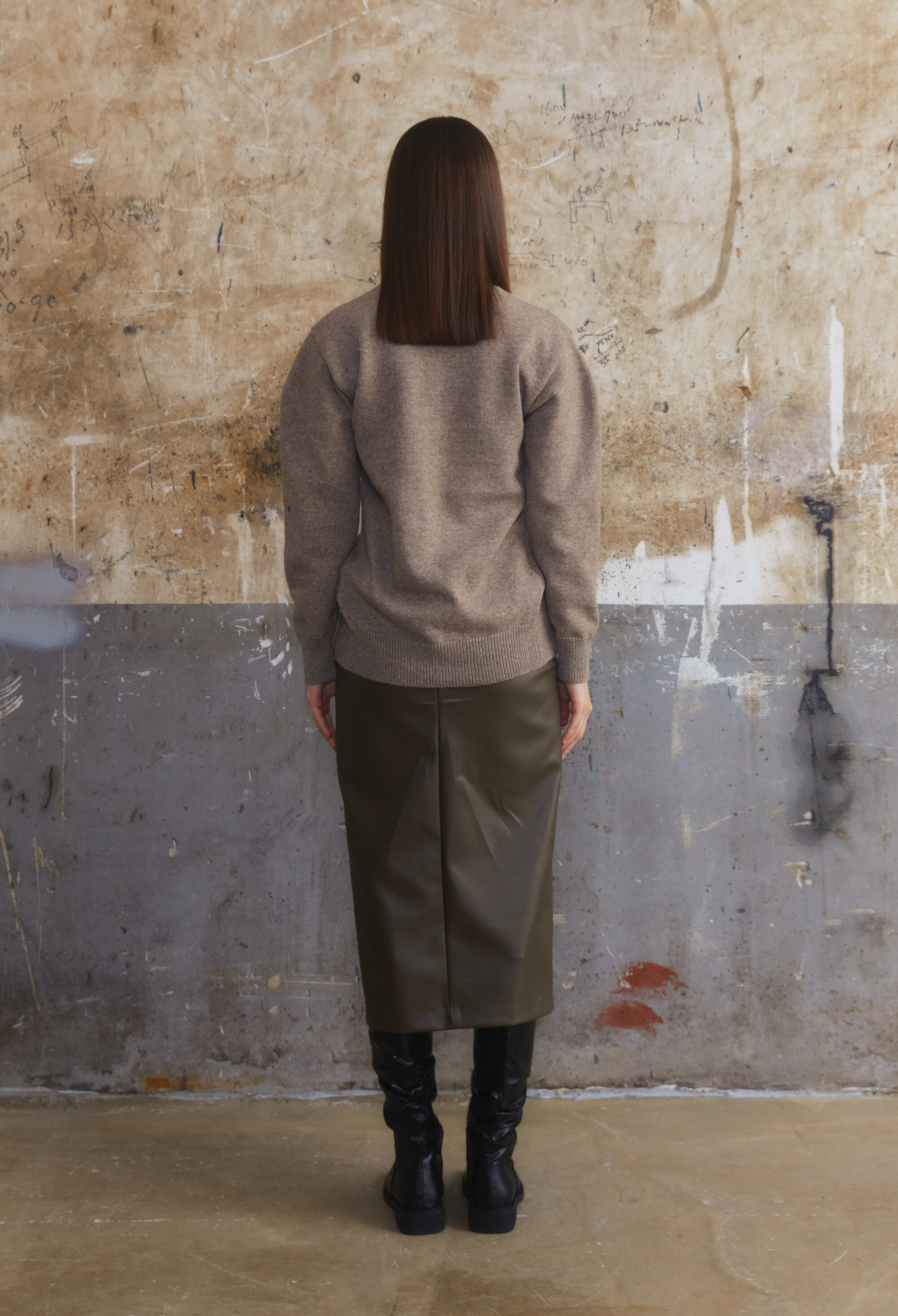 - 은은한 광택감의 에코 레더 H라인 스커트