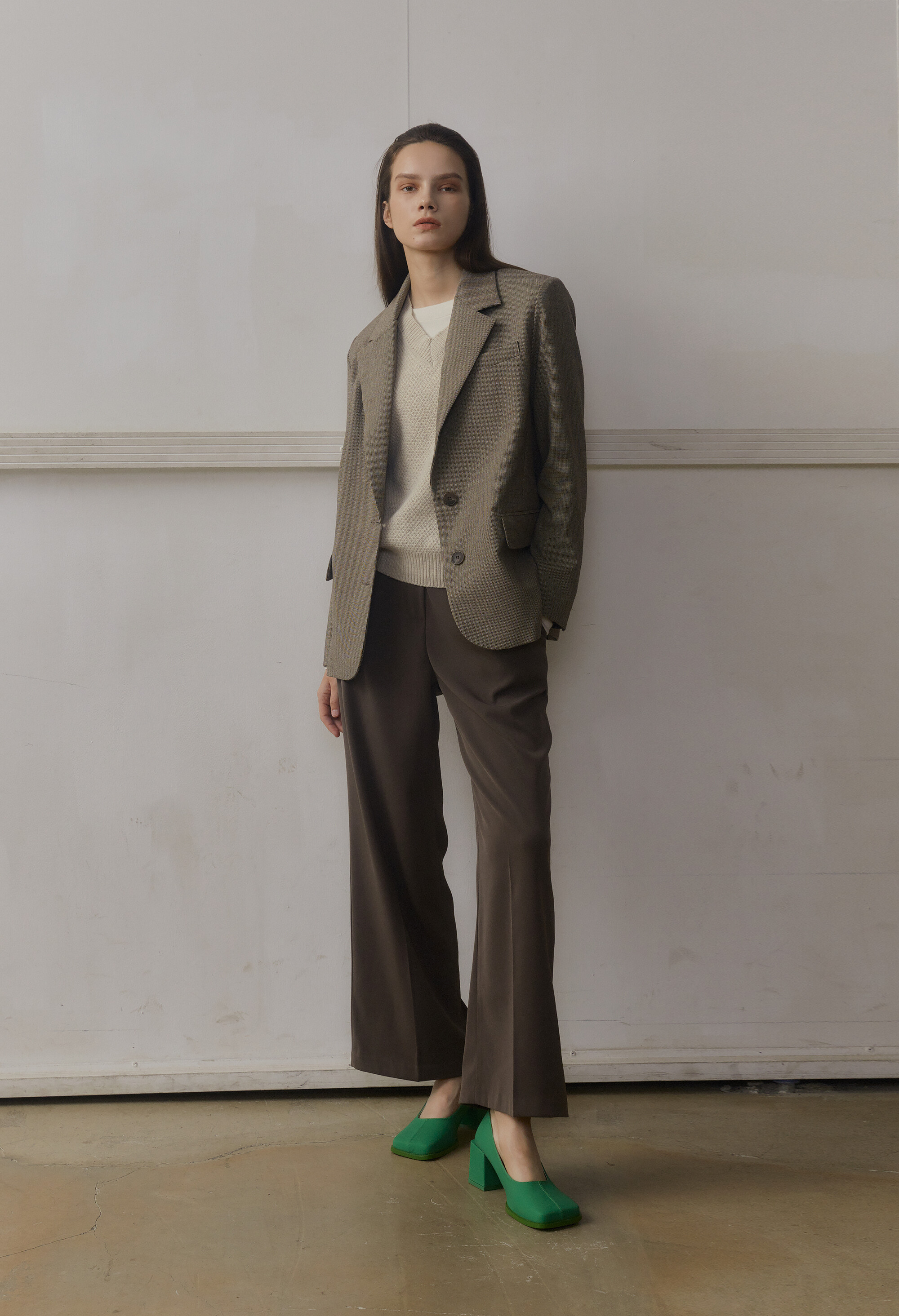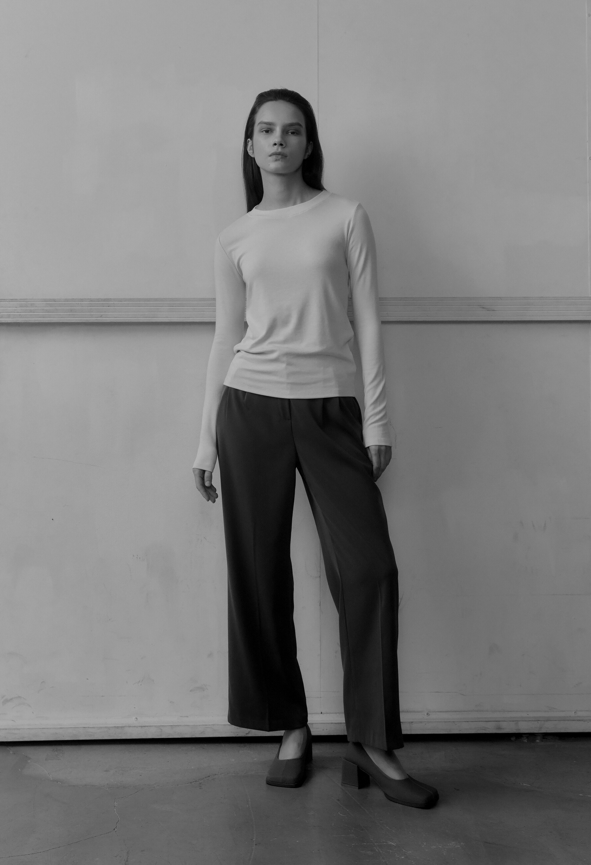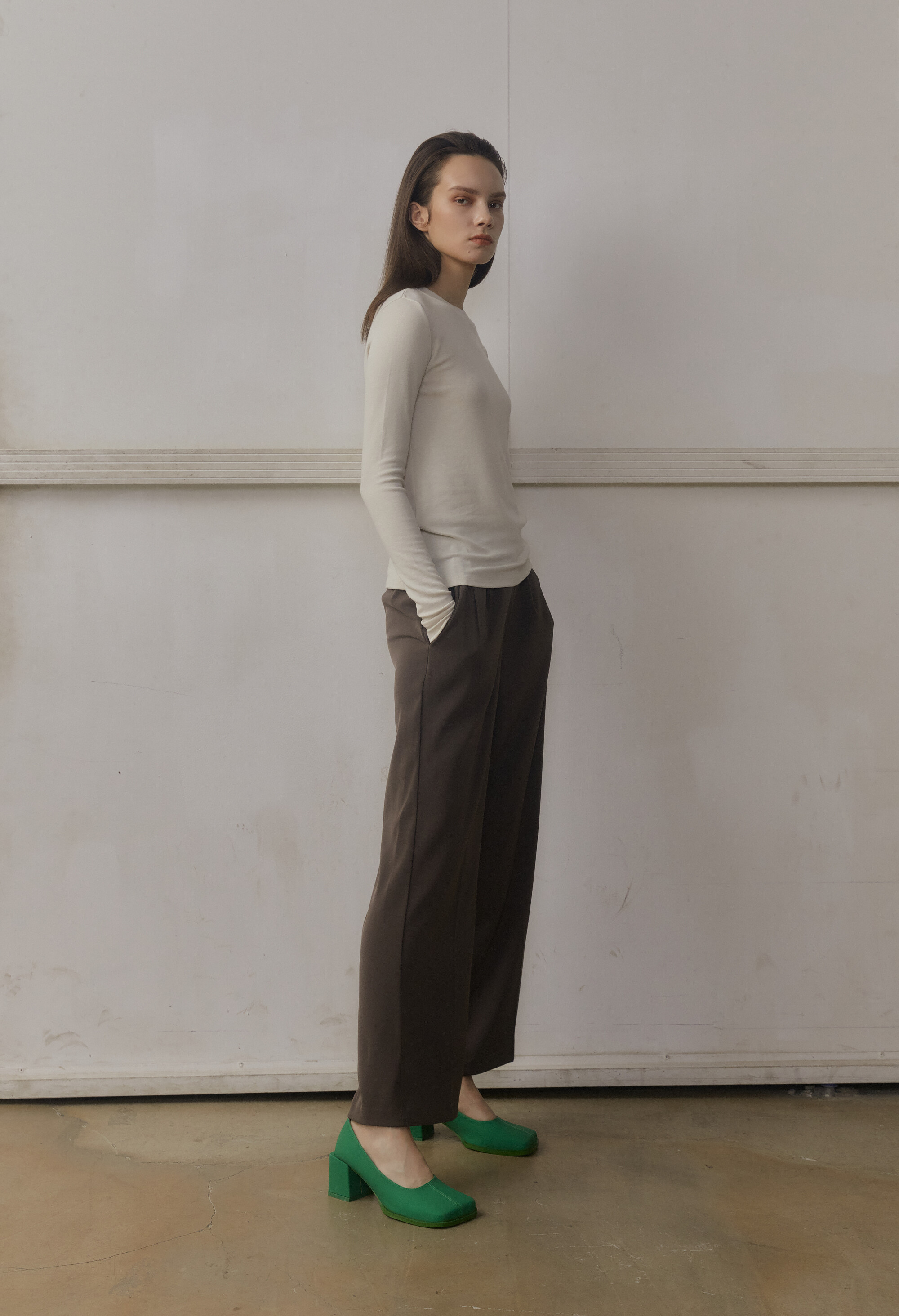 - 여유있는 실루엣의 와이드 밴딩 슬랙스