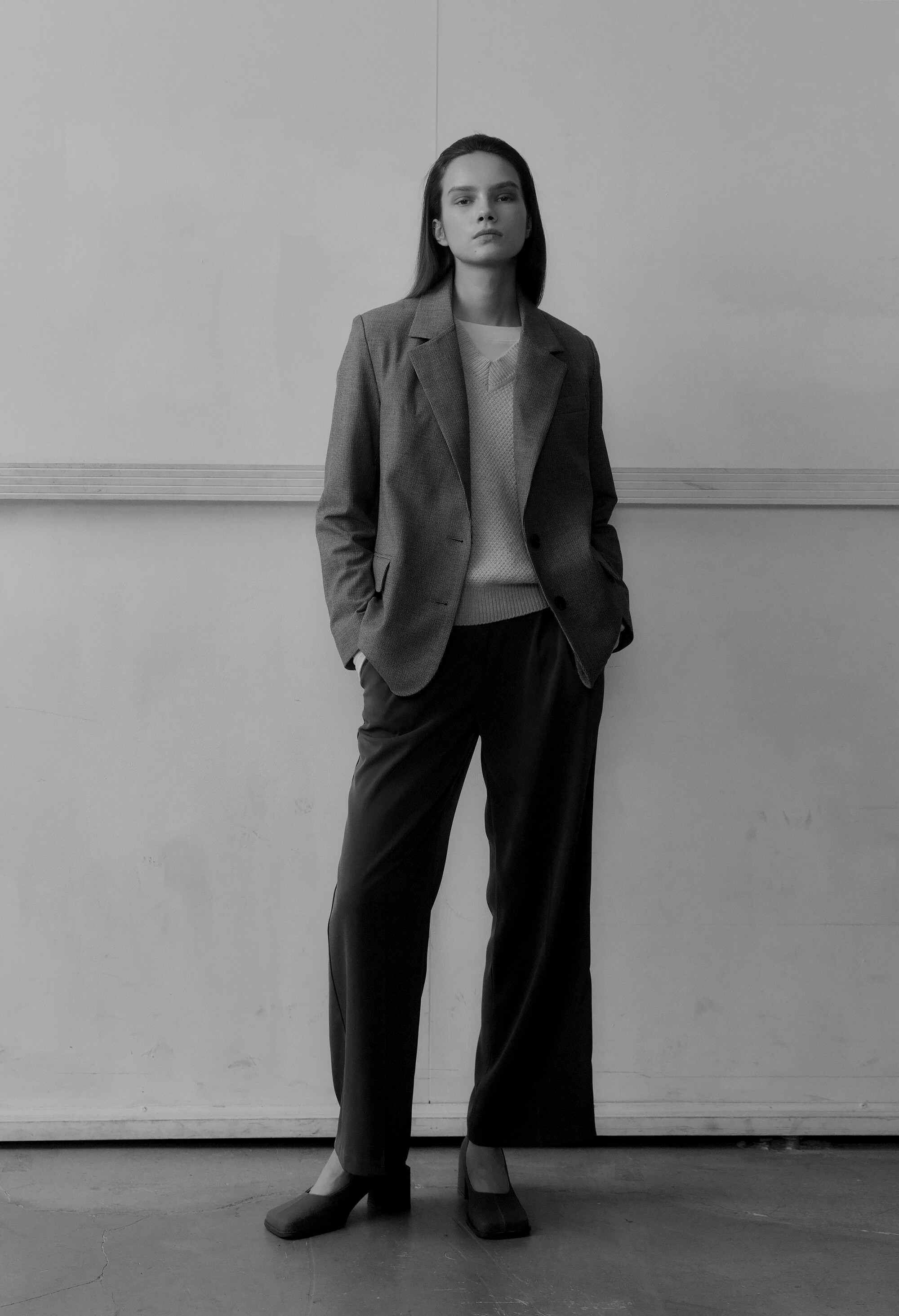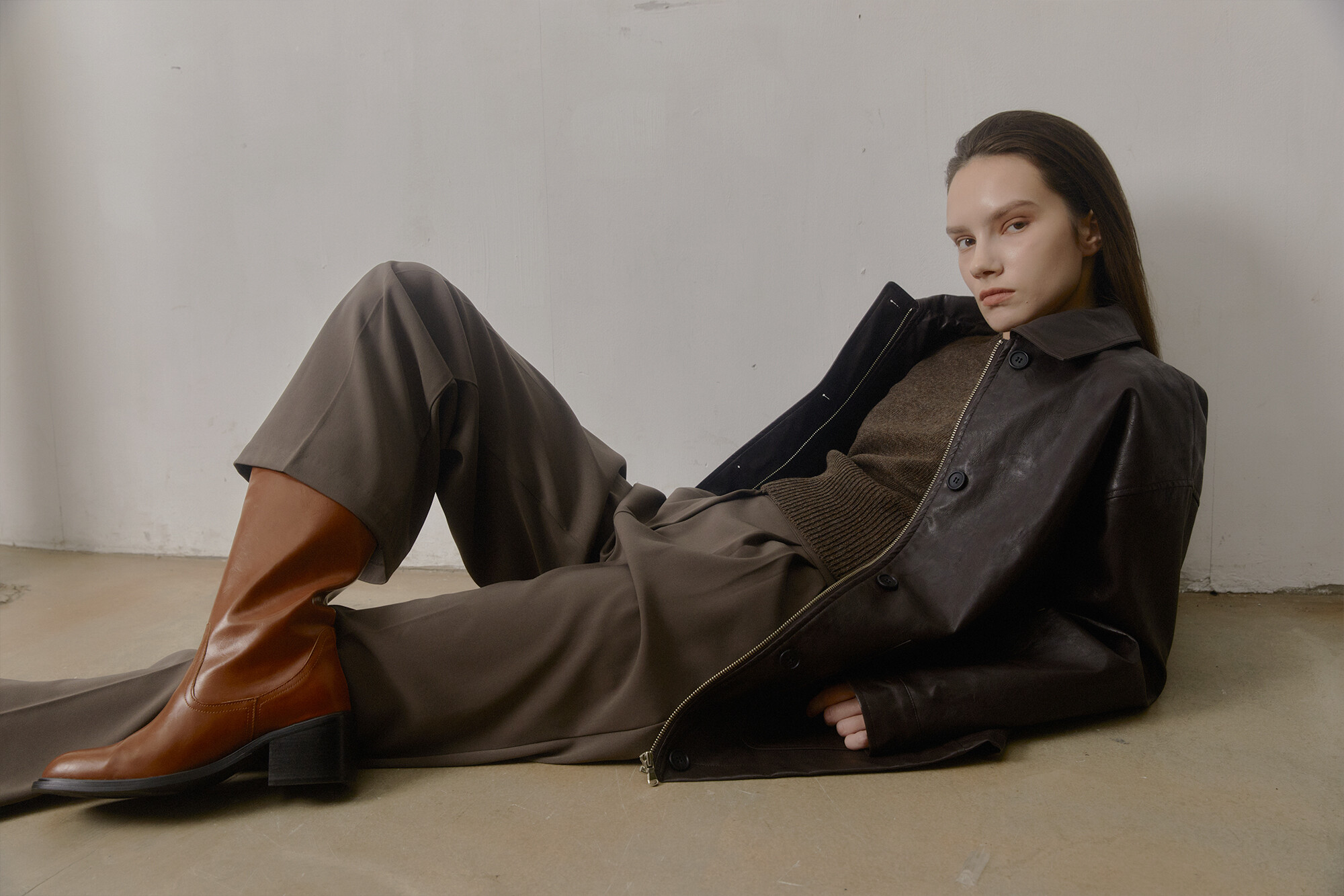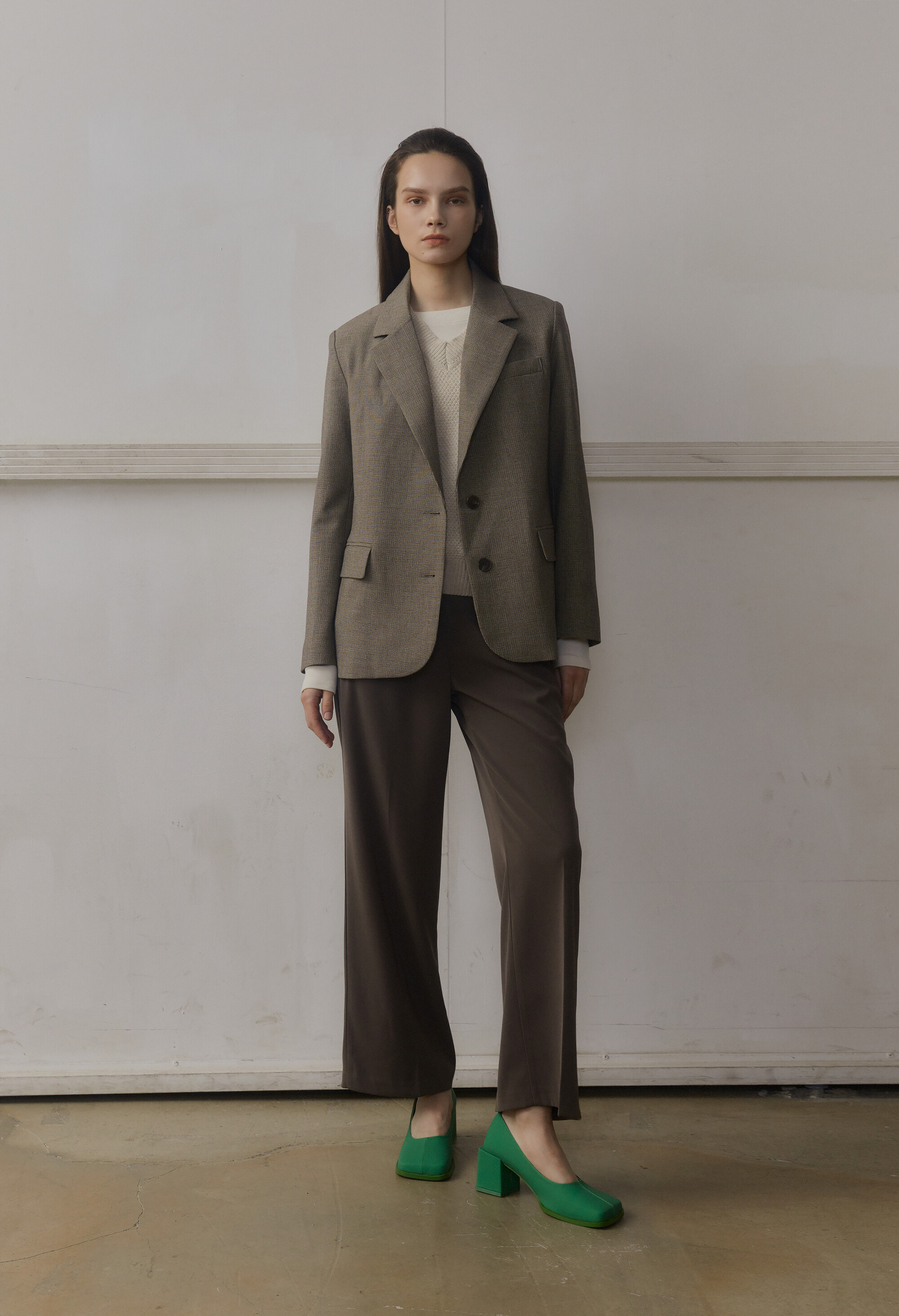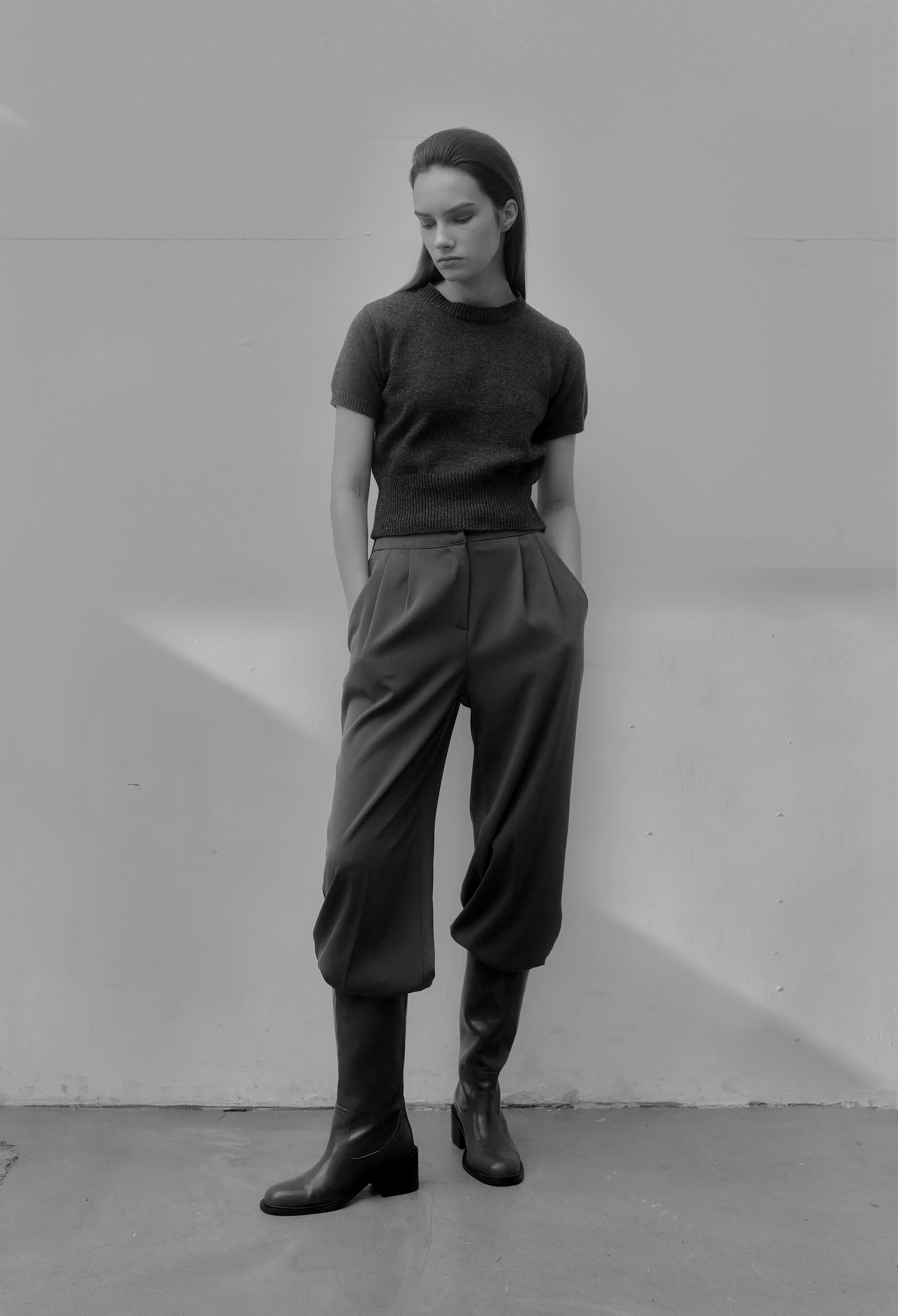 - 여유있는 실루엣의 와이드 밴딩 슬랙스