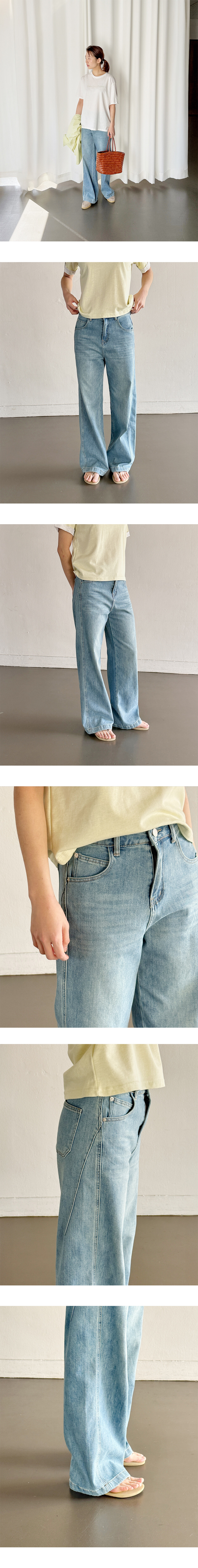 [P184] Side Line Detail Denim Pants