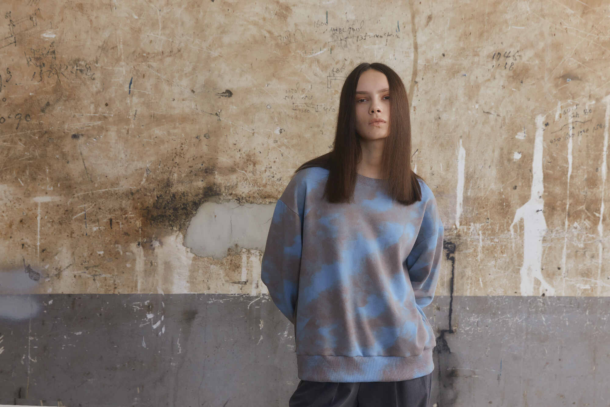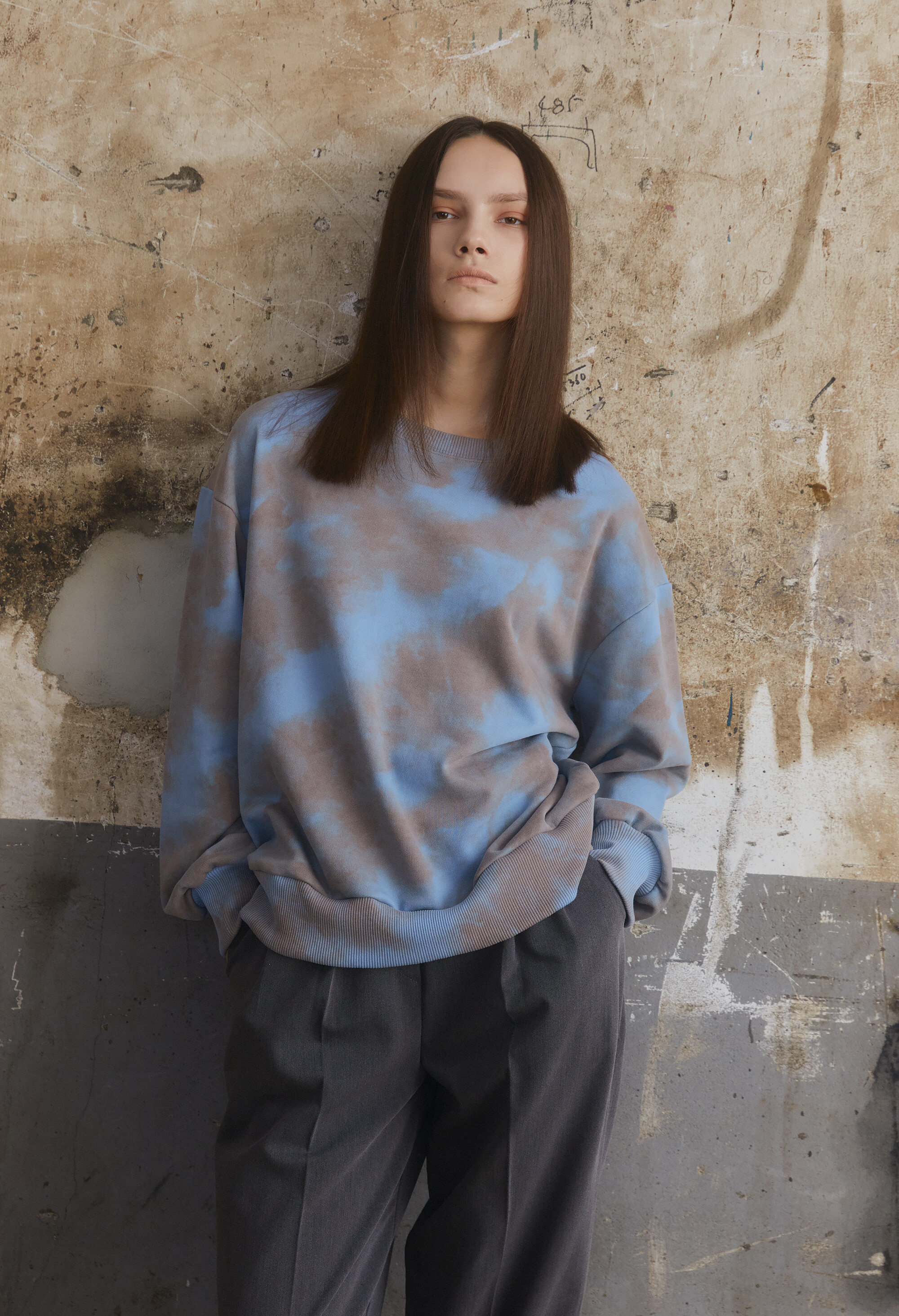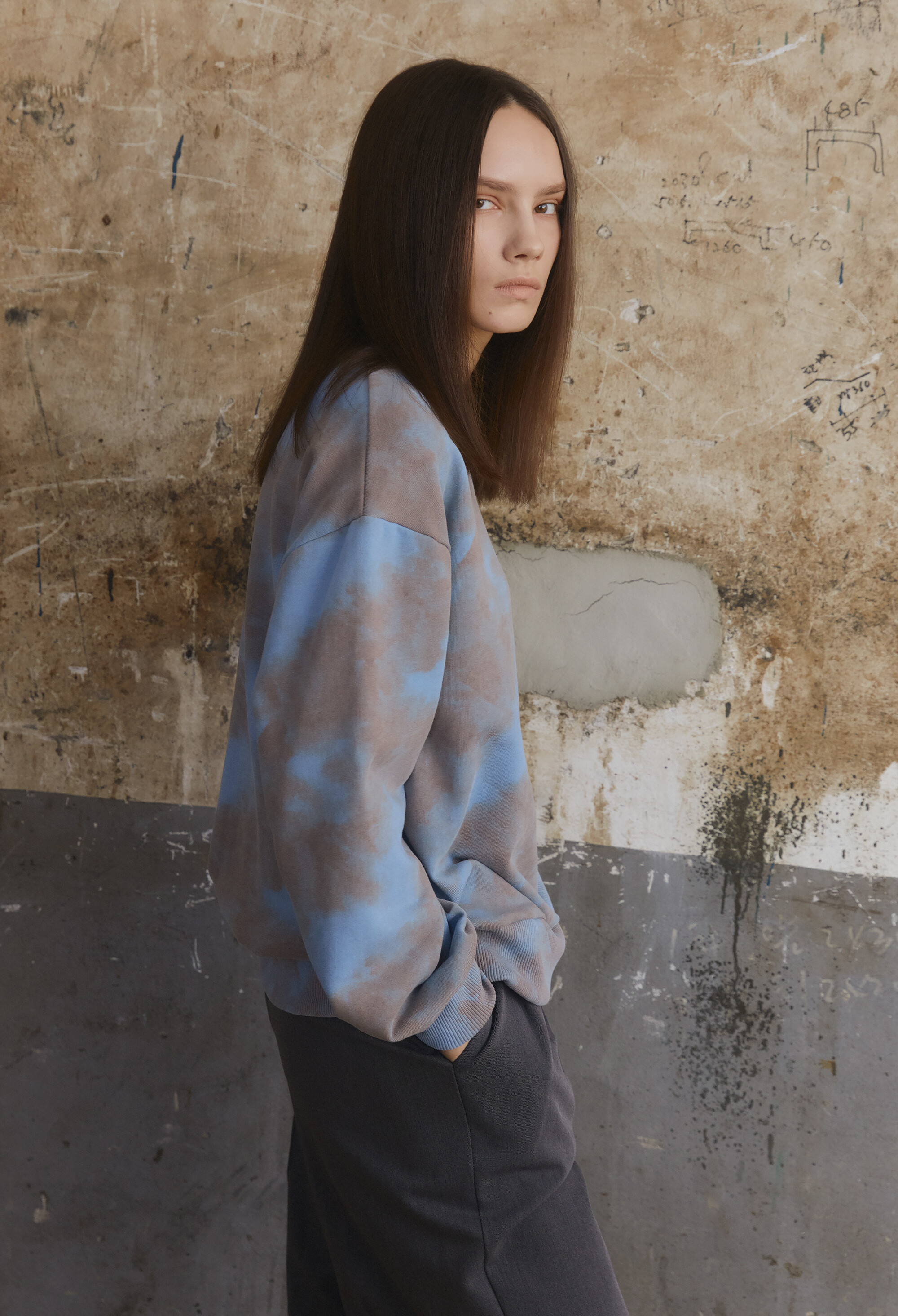 [R068] Tie-dye Overfit Sweatshirt - Blue