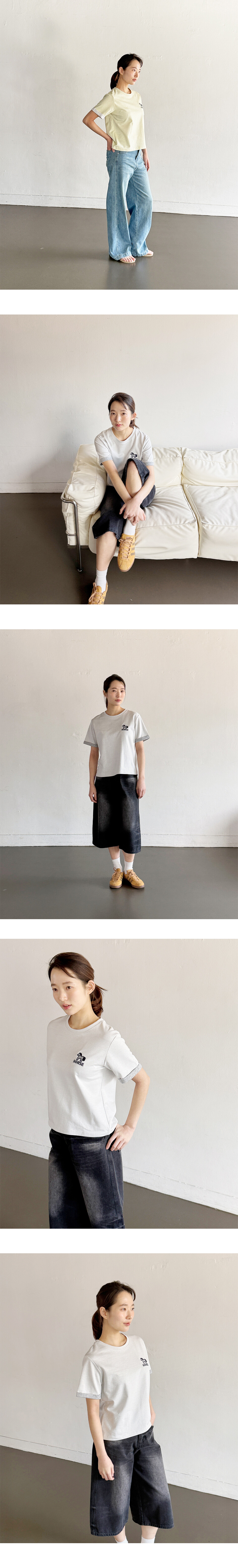 - 전면 자수 포인트가 돋보이는 디자인의 티셔츠