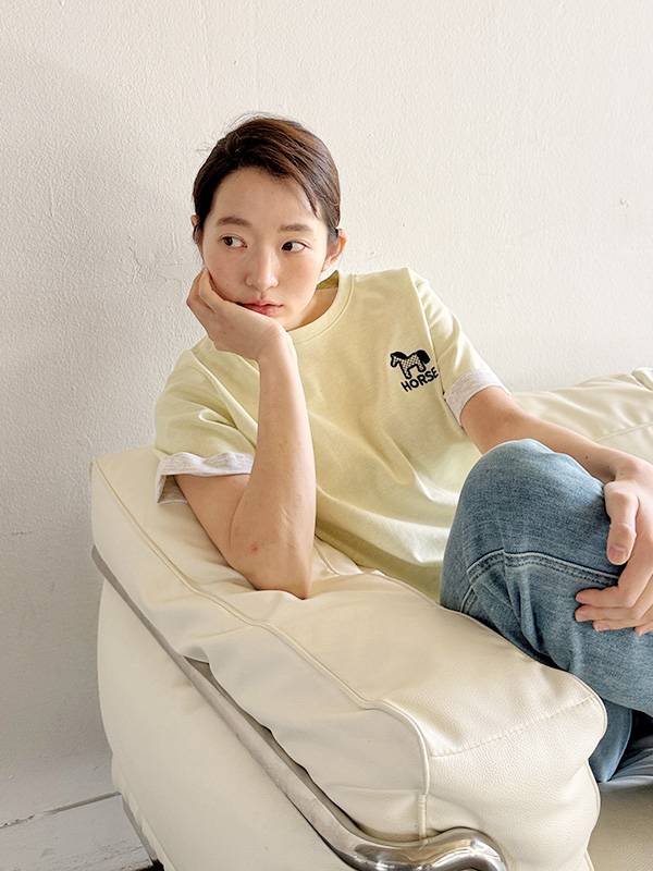[T194] Horse Embroidered Short Sleeve Tee