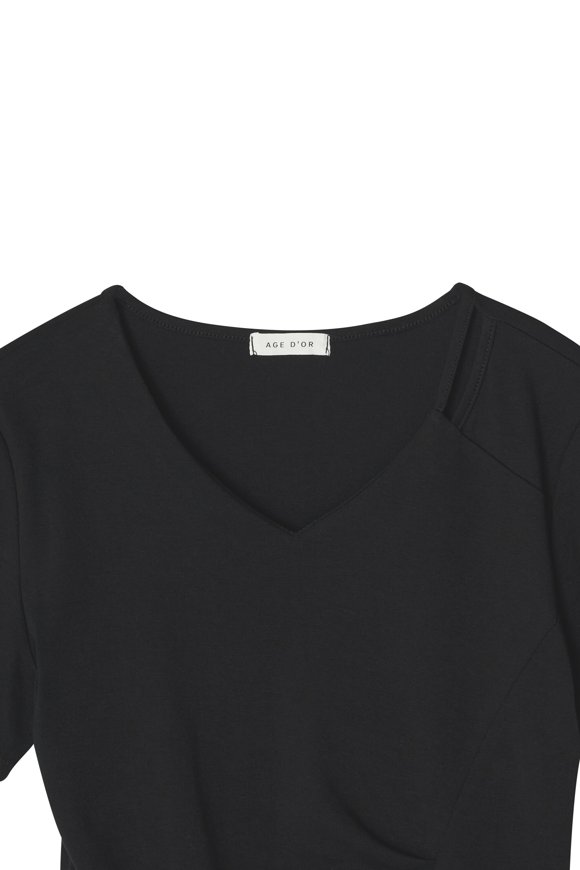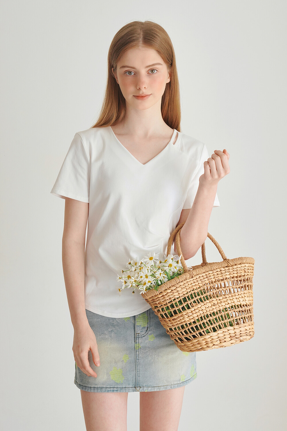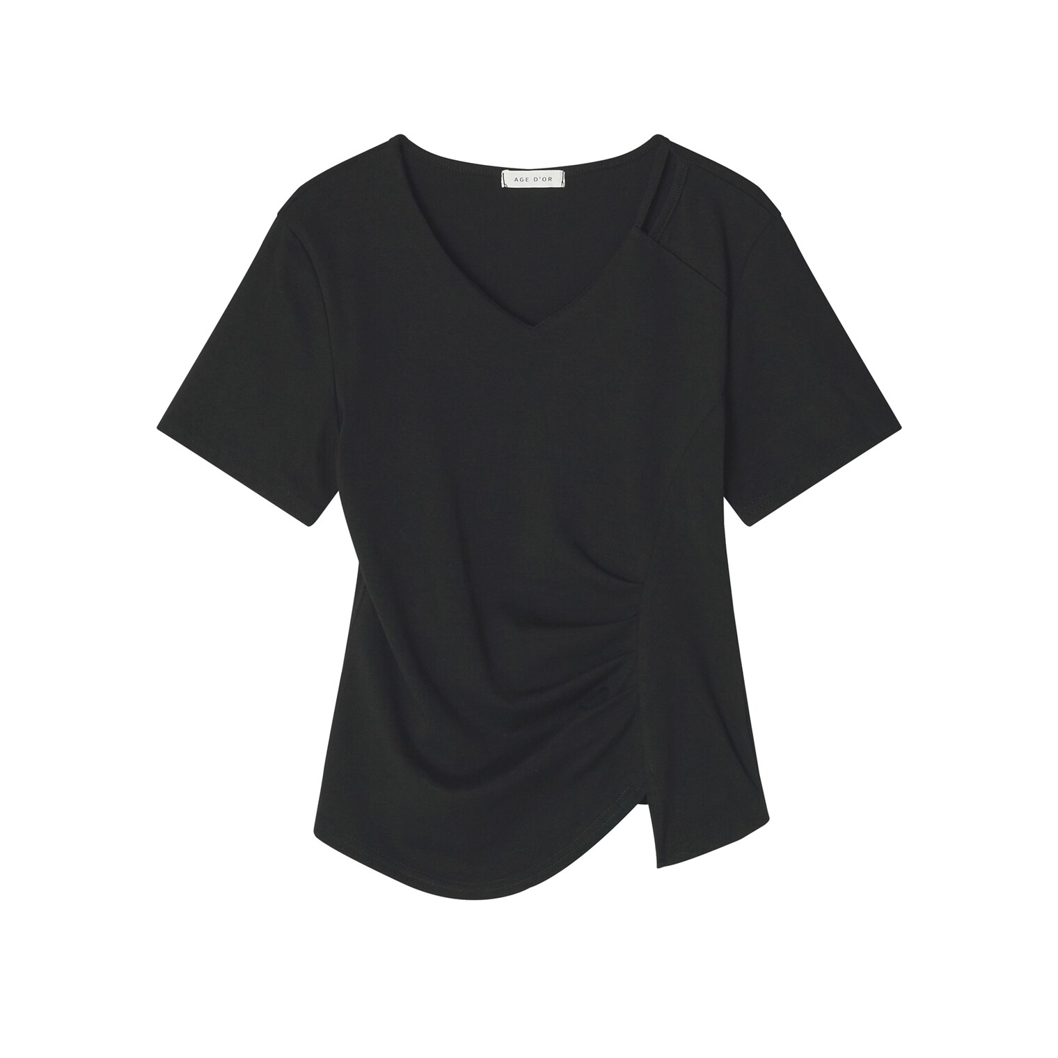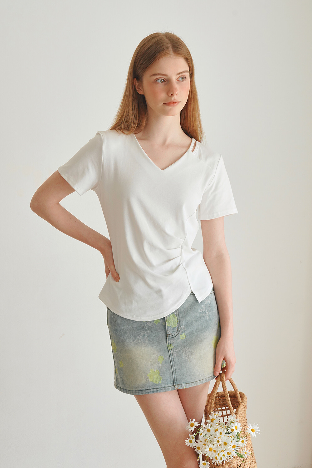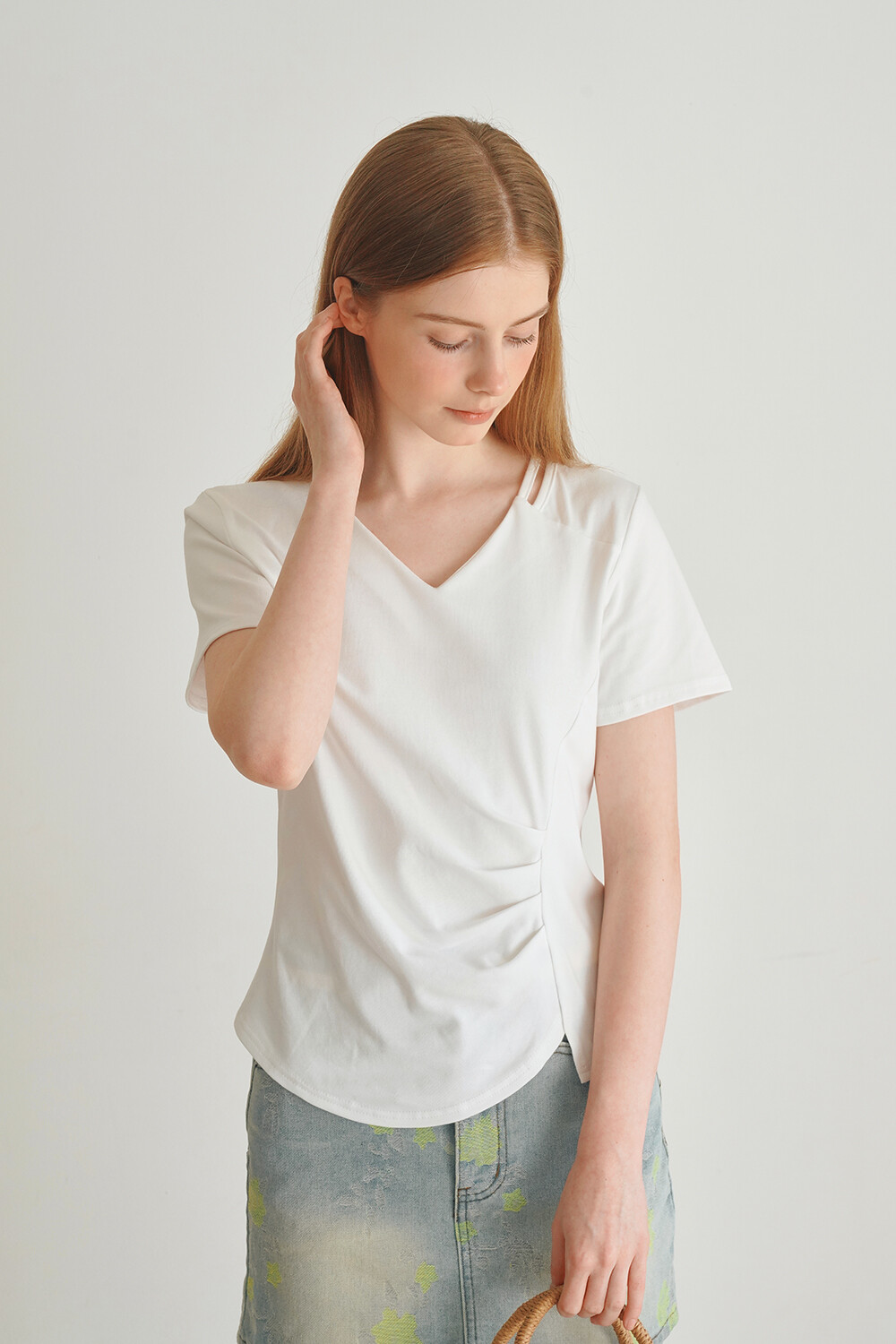 - 셔링과 슬릿 디테일이 돋보이는 티셔츠